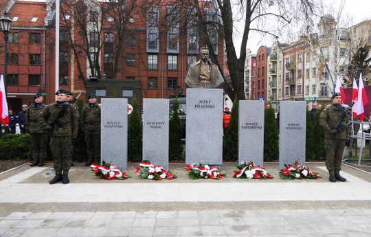 Z pomysłem dla upamiętnienia odzyskania niepodległości wystąpiła Maria Kosecka. Prezydent Elbląga zaproponował rozszerzenie jego formuły, by poza Marszałkiem Piłsudskim byli również upamiętnieni Ignacy Paderewski, Wincenty Witos, Ignacy Daszyński i Roman Dmowski.