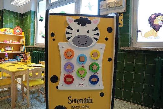 W każdym Kąciku Serenadowym na najmłodszych czeka wyjątkowa, duża interaktywna zabawka, zaprojektowana w konsultacji z pedagogami oraz psychologami dziecięcymi. Zawiera cztery gry edukacyjne, które znakomicie rozwijają koordynację ruchową i koncentrację dzieci oraz pobudzają ich wyobraźnię. Dodatkowo każdy kącik wyposażony jest w dziecięce mebelki w ciepłej żółtej barwie nawiązującej do kolorów marki Serenada. Wszystko to po to, aby dzieci z przyjemnością przebywały w tym miejscu, bawiąc się i ucząc jednocześnie.