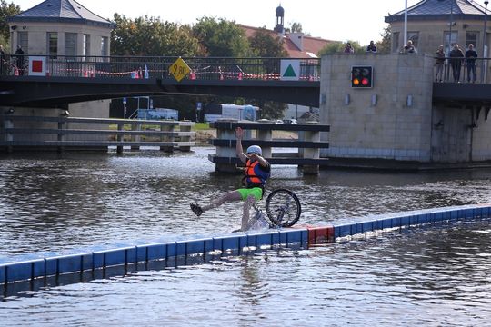 Splash Bike to nie lada wyzwanie. Po raz drugi w naszym mieście miłośnicy jazdy na rowerze mogli podjąć się próby przejechania 50 metrów po pływającej, wąskiej kładce na rzece Elbląg.