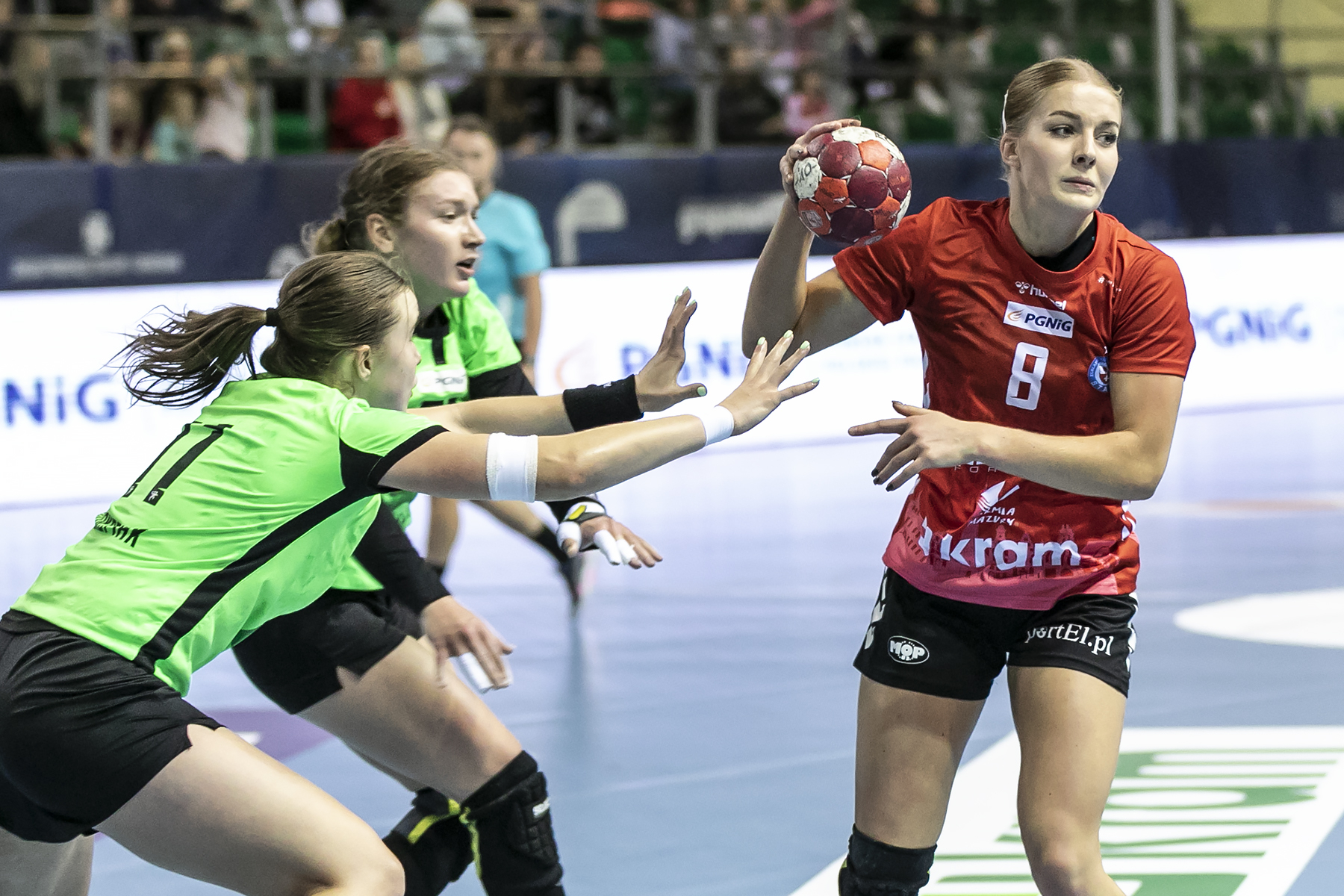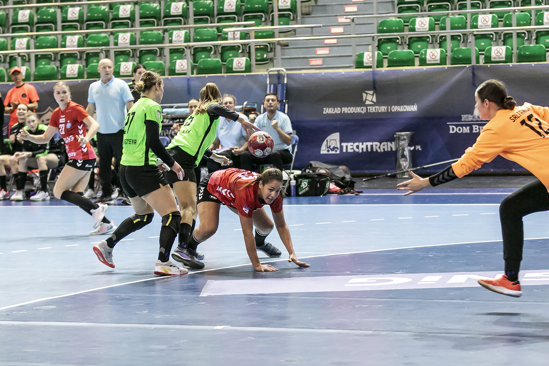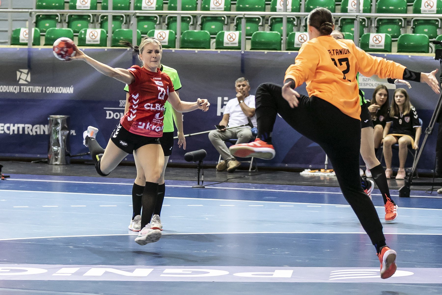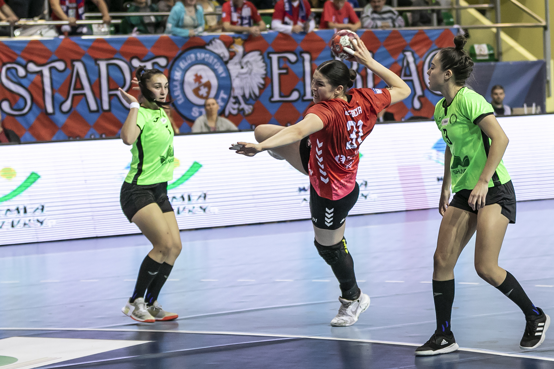Trzy bramki w trzy minuty i remis. Galiczanka zwietrzyła szansę i jako doświadczony zespół, pokazała mistrzowski charakter. Ukrainki trafiały, a ta sztuka kompletnie nie udawała się elblążankom. W 25 minucie nawet skrzydłowa Weronika Weber nie zdołała rzucić gola z karnego. Trzy zapisała sobie wtedy rozrywająca Mariana Markevych. Festiwal skuteczności rywalek pokazuje fakt, że w 8 minut rzuciły one 7 bramek i wygrały pierwszą części 18:14. Taka seria okazała się dla gospodyń zbyt dużym wyzwaniem.