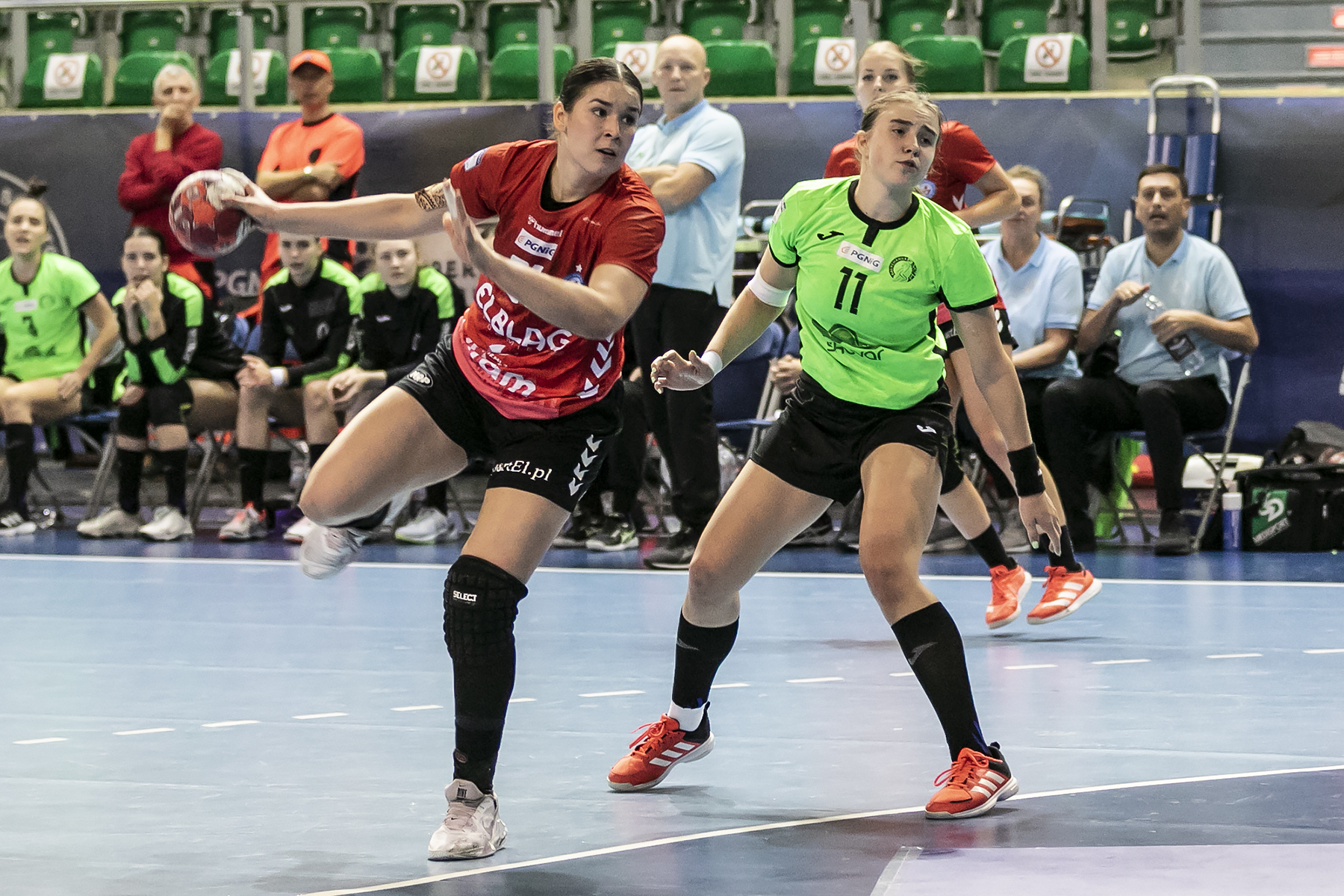 Na starcie EKS pokazał dobrą formę. Od początku, przez wiele minut, prowadził grę i wydawało się, że szczypiornistki trenera Romana Monta mają kontrolę nad tym pojedynkiem. W 6 minucie, po bramce Weroniki Weber, gola dorzuciła także Iga Dworniczuk i było 4:2. Chwilę później celnym rzutem popisała się Paulina Stapurewicz i zdobyła dzięki temu 7 bramkę dla miejscowych. Można było być zadowolonym z postawy szczypiornistek.