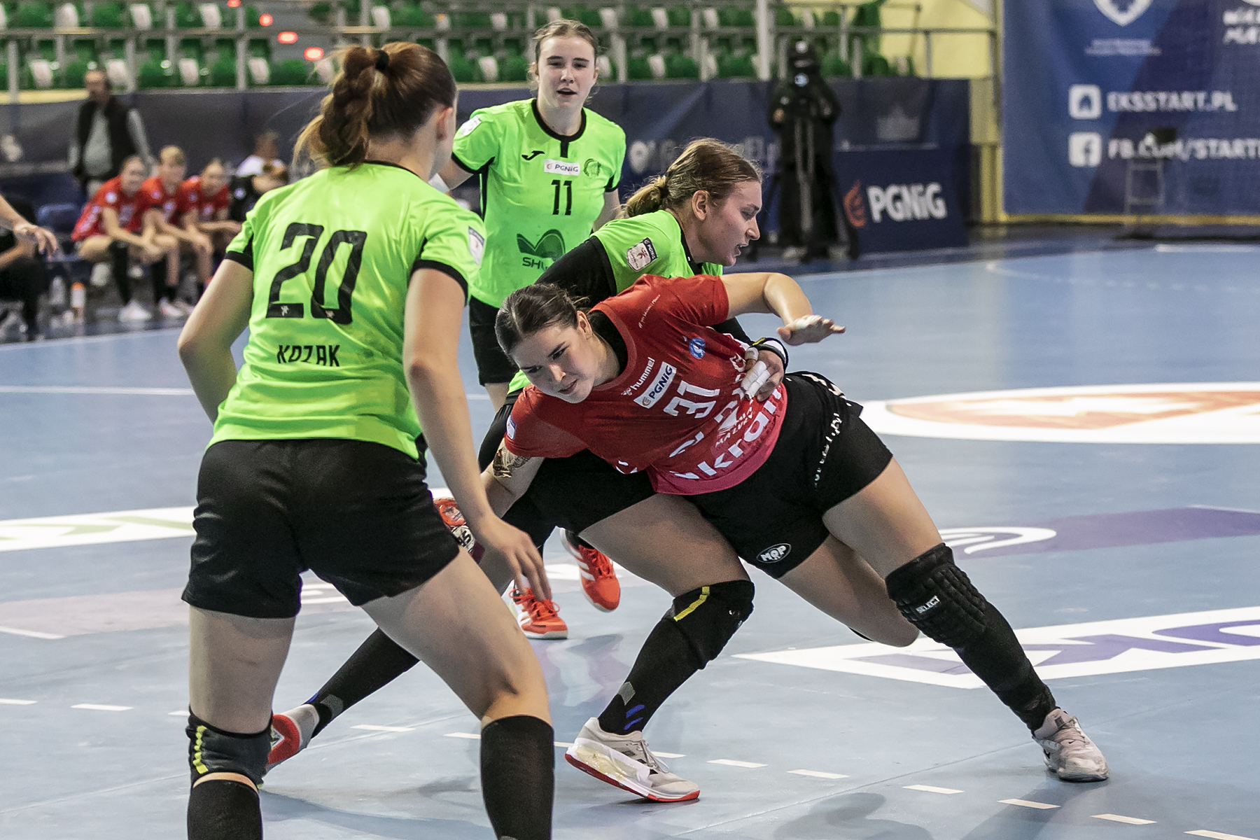 Przewaga nad zespołem zza wschodniej granicy wkrótce była już spora, bo wskazywała trzy trafienia. Galiczanka oczywiście goniła, ale gdy ekipa mistrzyń Ukrainy zbliżała się, Start odpowiadał zdobytym golem. Szczególnie było to widać w 14 minucie, gdy po wykluczeniu Juliane Costy, Nikola Głębocka rzuciła na 8:6. Gdy rzucasz bramkę w osłabieniu czujesz się mocny. Start nie wypuszczał więc swojej dwu bramkowej przewagi. Co więcej, w 21 minucie Aleksandra Zabielny zmieściła piłkę między słupkami i zrobiło się 14:11. Można było zakładać, że EKS będzie o krok od kolejnego zwycięstwa w Superlidze.