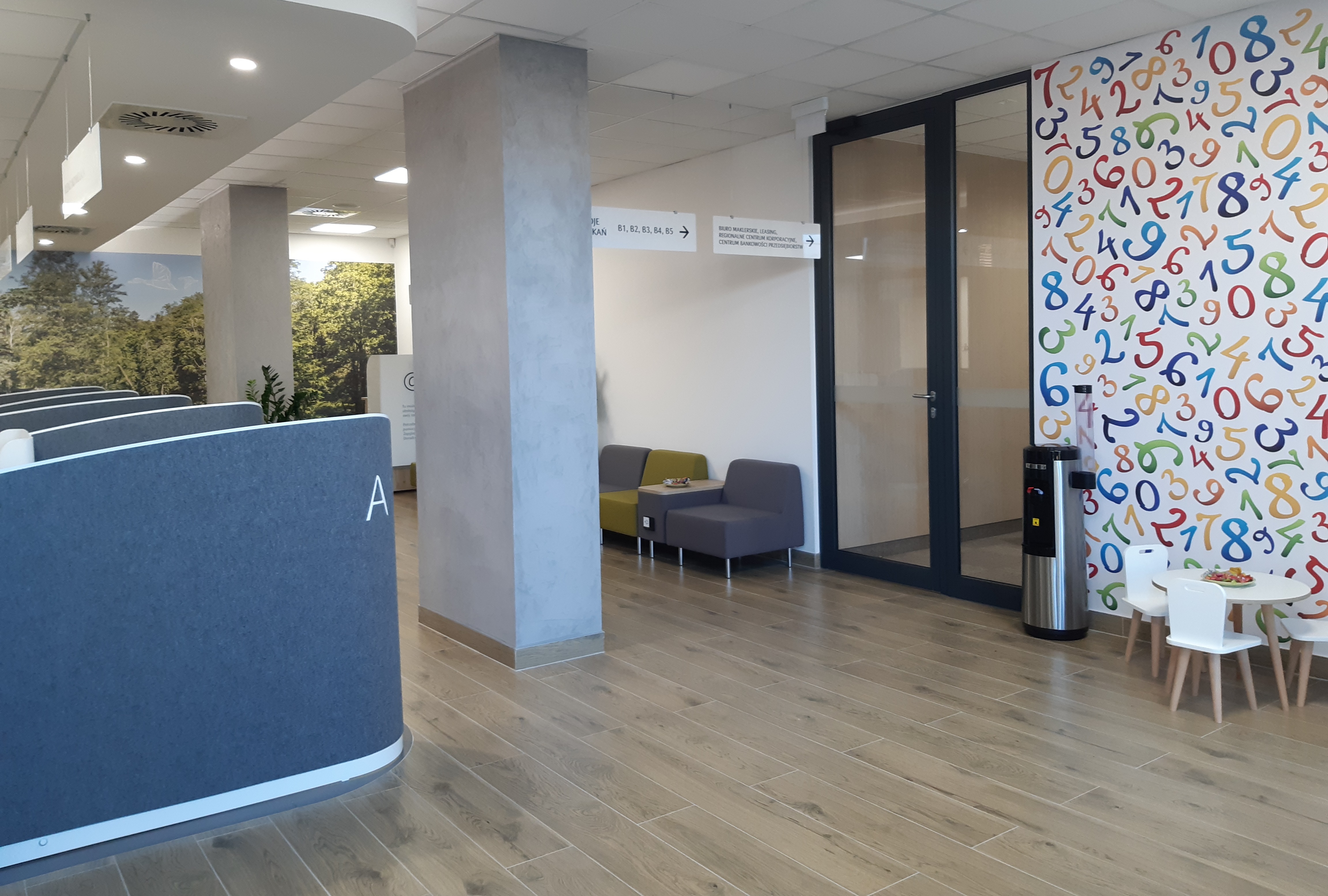 Obsługa odbywa się przy 5 stanowiskach transakcyjnych i w 5 pokojach spotkań. Nowa aranżacja zapewnia dyskrecję i komfort obsługi. Dla klientów dostępny jest bankomat z funkcją wpłatomatu czynny całą dobę oraz wrzutnia. W placówce nie ma już papierowych plakatów – wszystkie najważniejsze informacje np. o ofercie dla klientów dostępne są w formie elektronicznej na dużym ekranie. Dla tych, którzy mają mało czasu i chcą załatwić sprawy „na szybko” pozostaje do dyspozycji stanowisko internetowe, dzięki któremu zalogują się do swojego konta i sprawdzą np. ile mają pieniędzy na rachunku lub zlecą przelew. Przy obsłudze urządzenia samoobsługowego w każdej chwili może pomóc doradca.