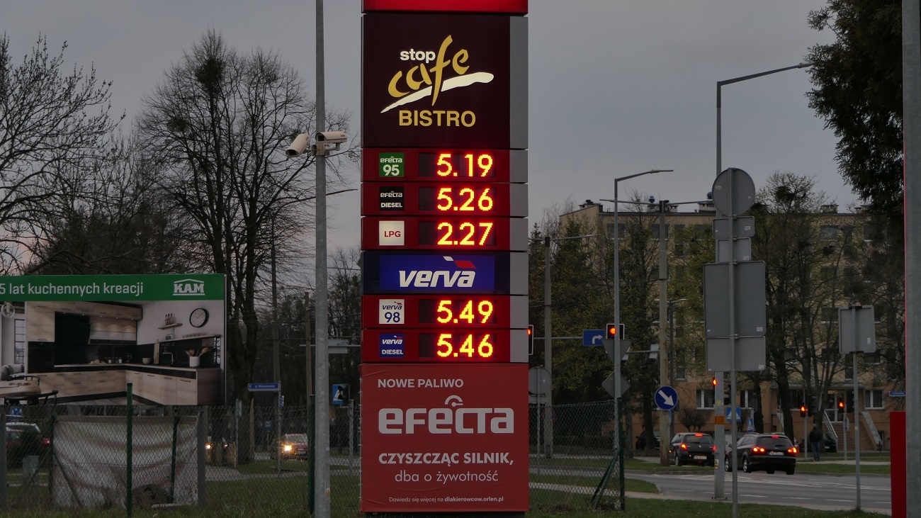 PB 95 - 5.25 zł ( w marcu 4.91, wzrost o 34 grosze)