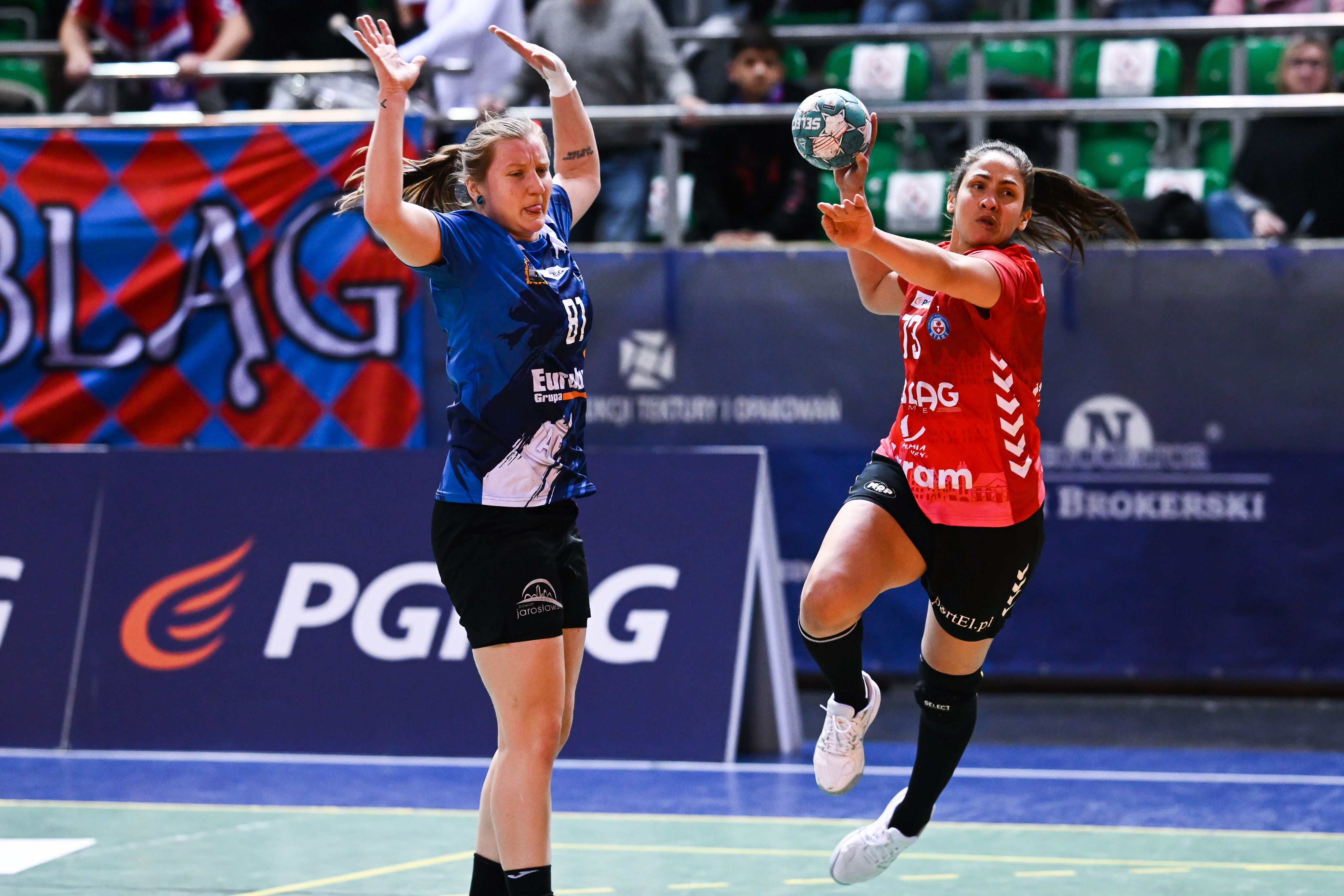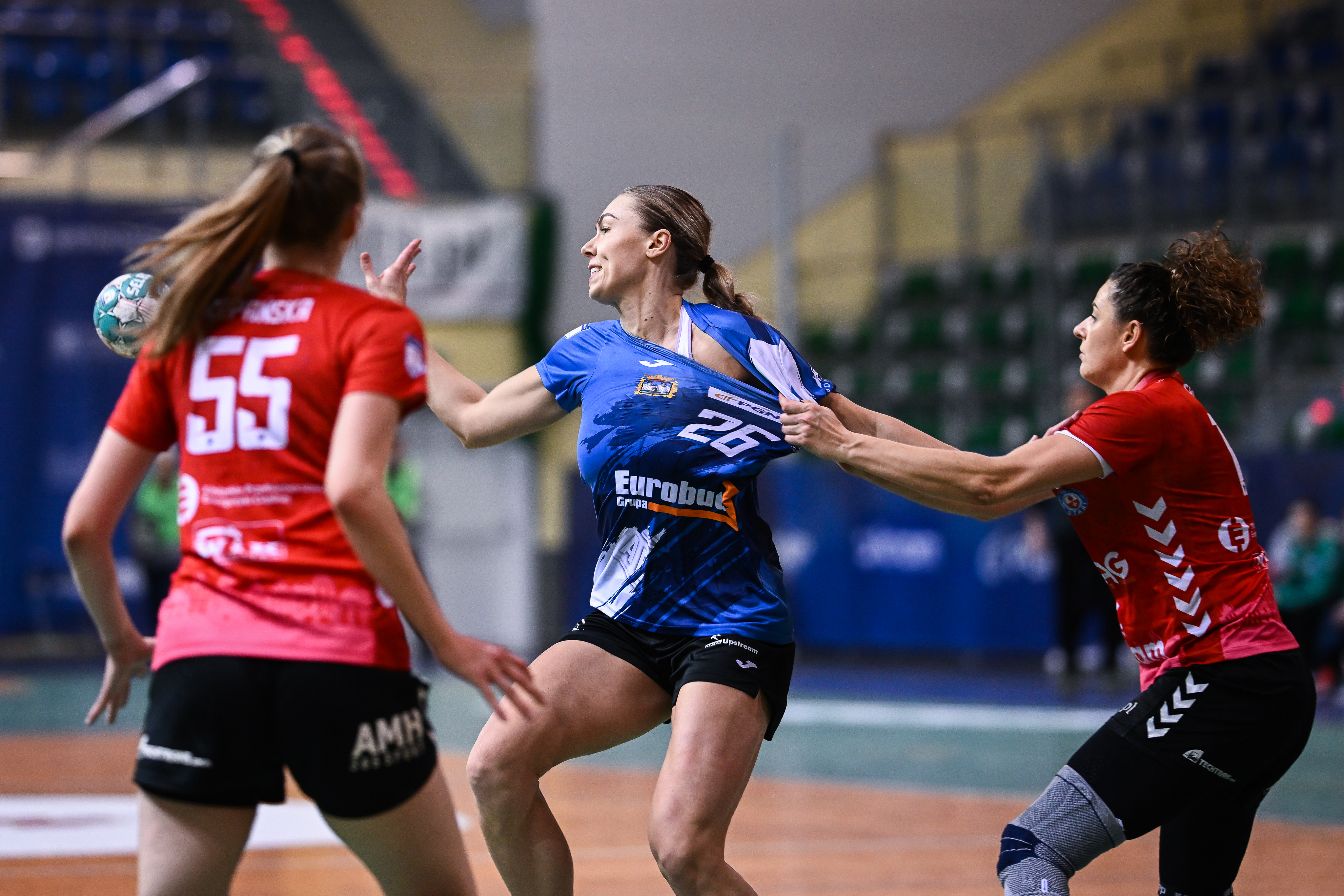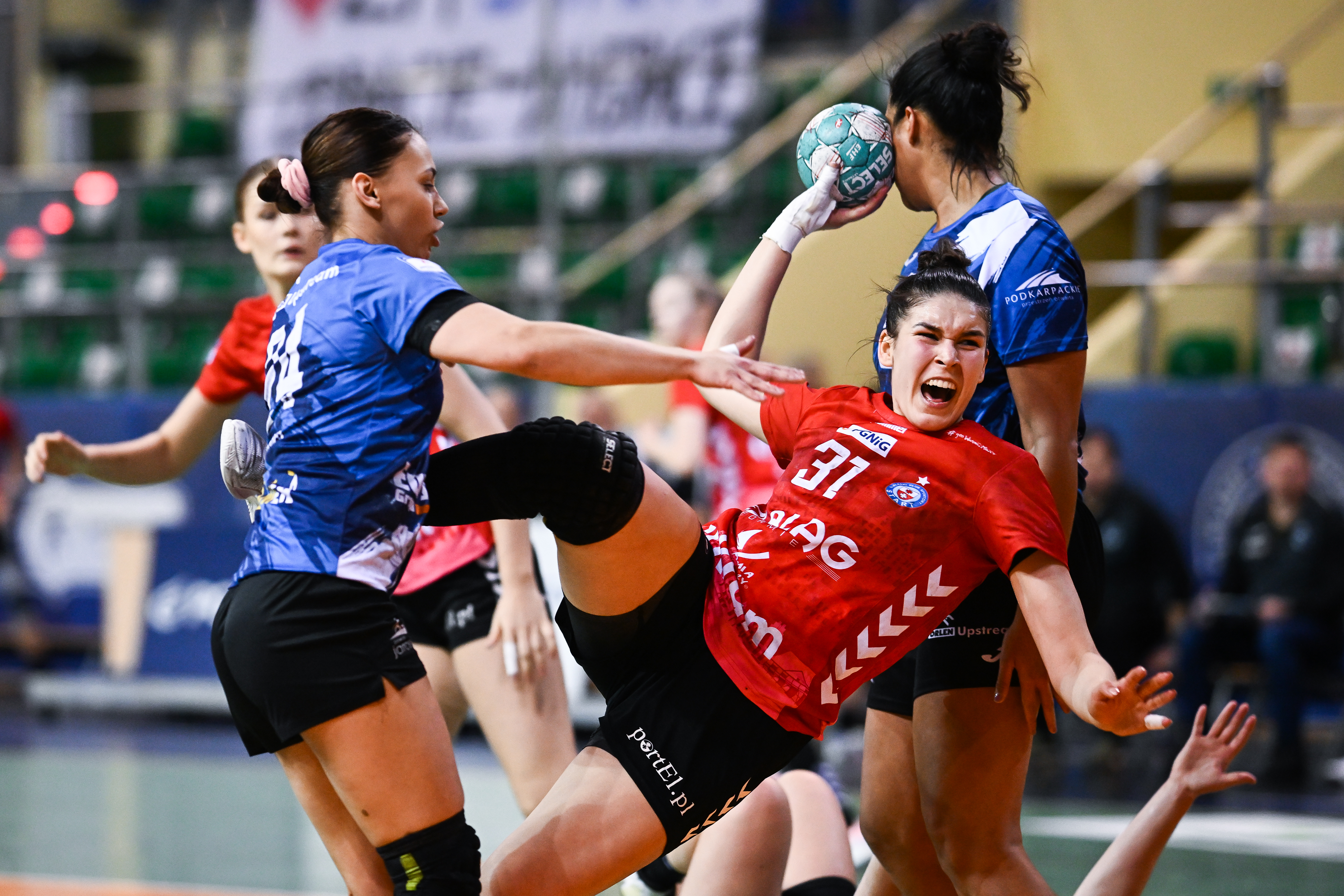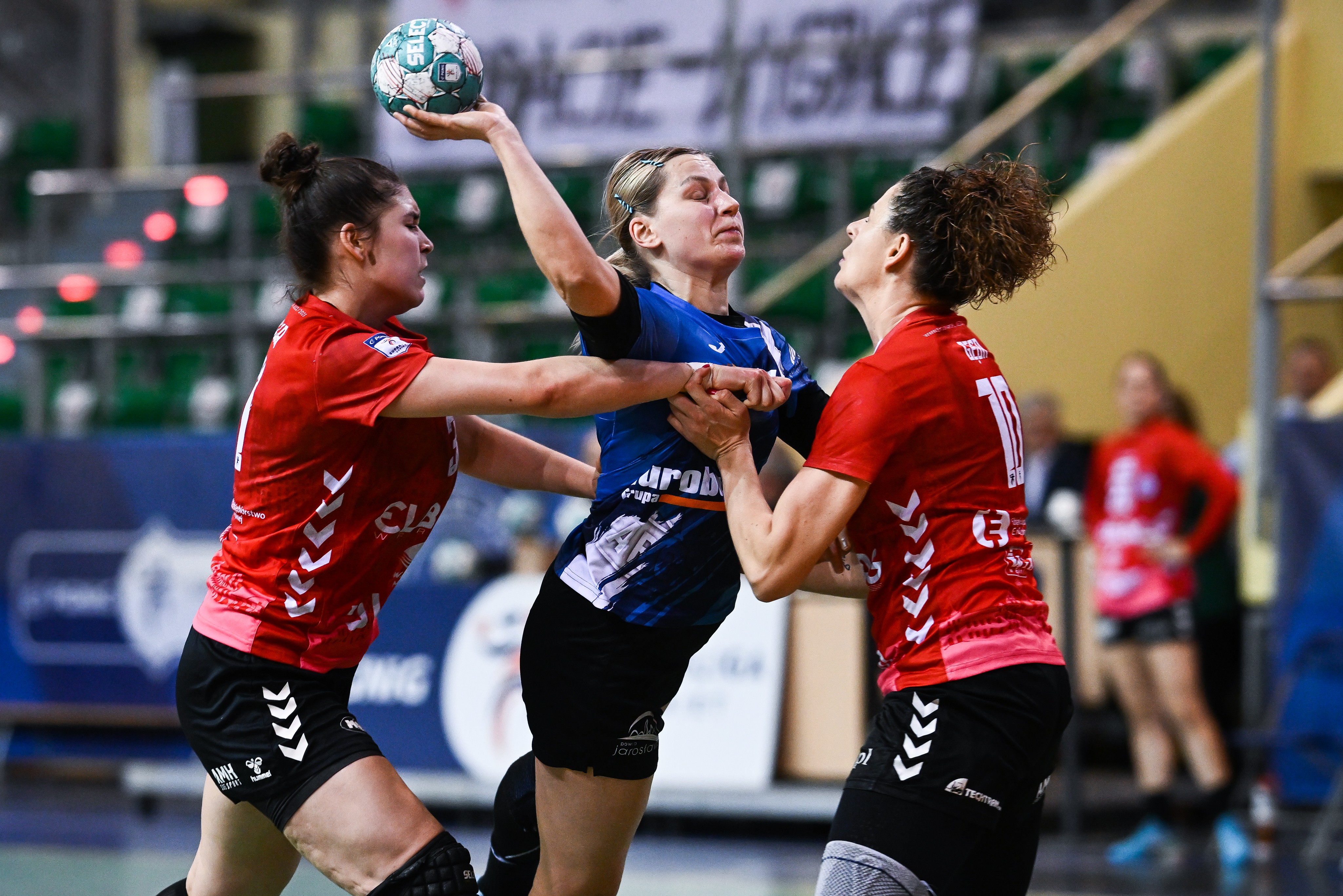 Mecz się trochę rozruszał. Bramek było więcej, a gdy Sylwia Matuszczyk w 25 minucie otrzymała karę dwóch minut, drużyna trenera Romana Monta miała okazję na zbudowanie przewagi. Jednak w tamtej sytuacji JKS rzucił celnie, a potem między słupki trafiła Lesia Smolinh i zrobiło się 9:11. Spryt Weroniki Weber w końcówce poprawił wynik.