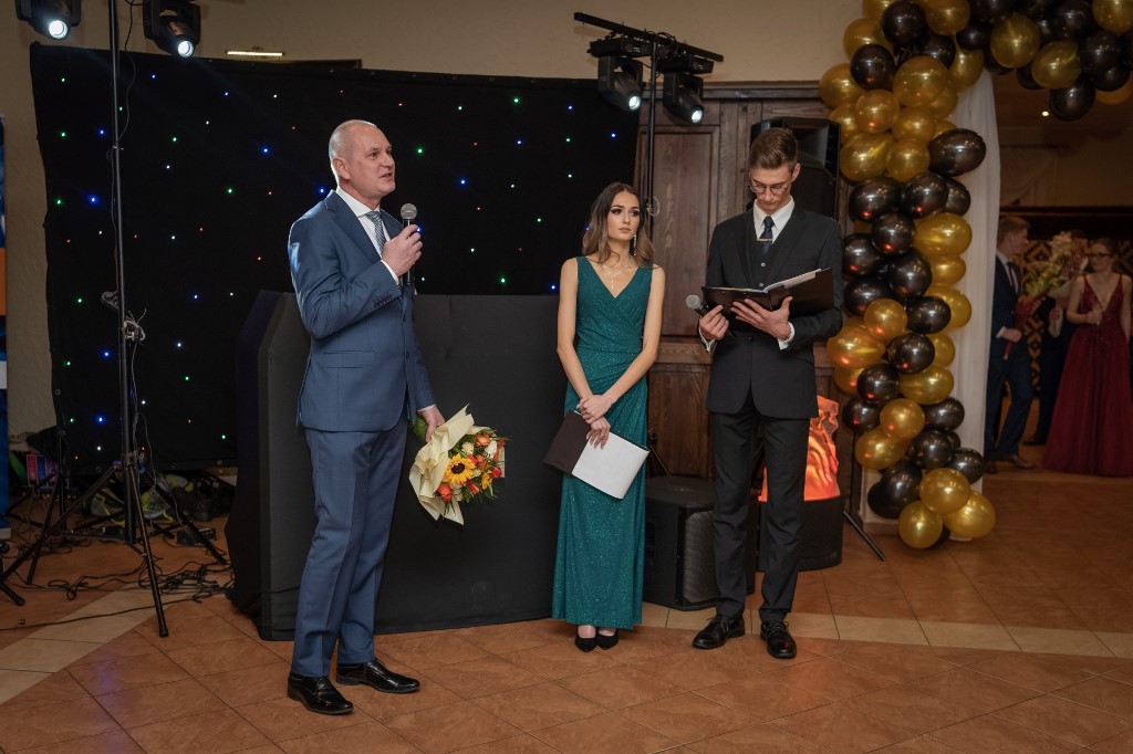 Część oficjalną poprowadzili uczniowie Wiktoria Boczko i Krystian Ćwikliński. Maturzystów i gości powitał ciepło dyrektor szkoły Marian Matuszczak. Miłe słowa do abiturientów skierowali również wicestarosta elbląski Ryszard Zając, zastępca burmistrza Pasłęka Marek Sarnowski i przewodnicząca Rady Rodziców Ewa Błachnio-Semkiw. Studniówka staropolskim obyczajem rozpoczęła się polonezem.