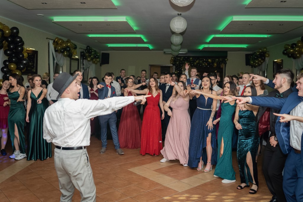 Maturzyści w doskonałych nastrojach bawili się do białego rana. Pokazali swój wielki kunszt taneczny, wykonując rewelacyjnie taniec belgijkę. Wychowawczyniom zakręciła się łezka w oku, gdy zobaczyły przygotowane przez uczniów filmiki niespodzianki.
