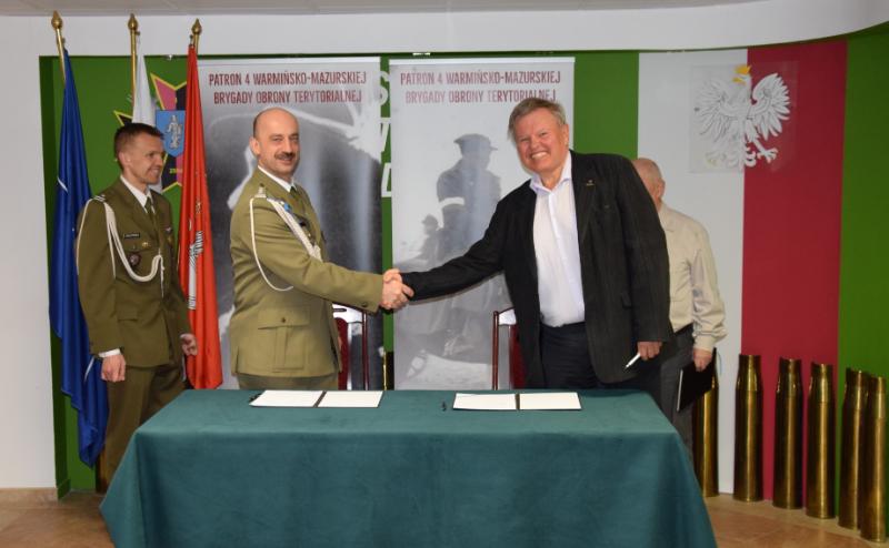 Płk Mirosław Bryś, dowódca 4WMBOT podpisał porozumienia o współpracy z Aeroklubem Warmińsko-Mazurskim w Olsztynie, reprezentowanym przez prezesa AWM Aleksandra Jarmołkowicza i wiceprezesa AWM Adama Kowalczyka.