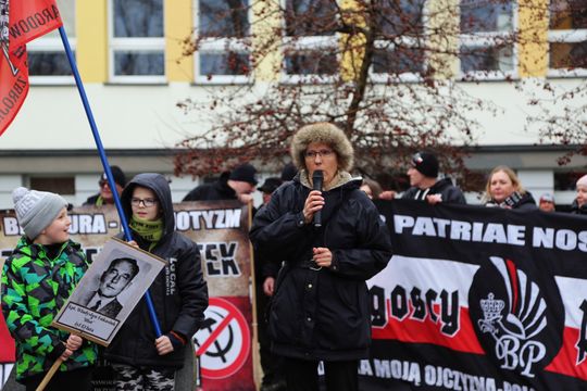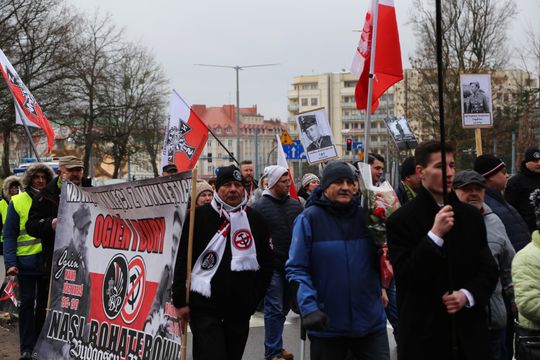 Uroczystość rozpoczęła się o godzinie 12 na skwerze rtm. W.Pileckiego (obok szkoły muzycznej). Po okolicznościowych przemówieniach, kilkadziesiąt osób (z naszych szacunków około 100) przeszło ulicami Traugutta, Górnośląska, Agrykola, aż do Ronda Żołnierzy Wyklętych. Tam zostały złożone kwiaty, uczestnicy zaśpiewali również hymn państwowy.