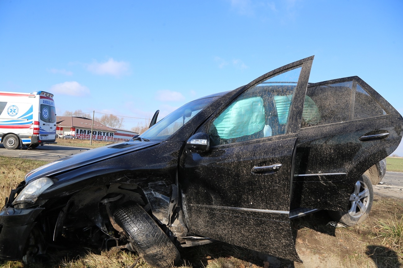 Świadkowie zdarzenia potwierdzają, że kierujący mercedesem miał włączony kierunkowskaz, a do zderzenia doszło już przy zjeździe na posesję.