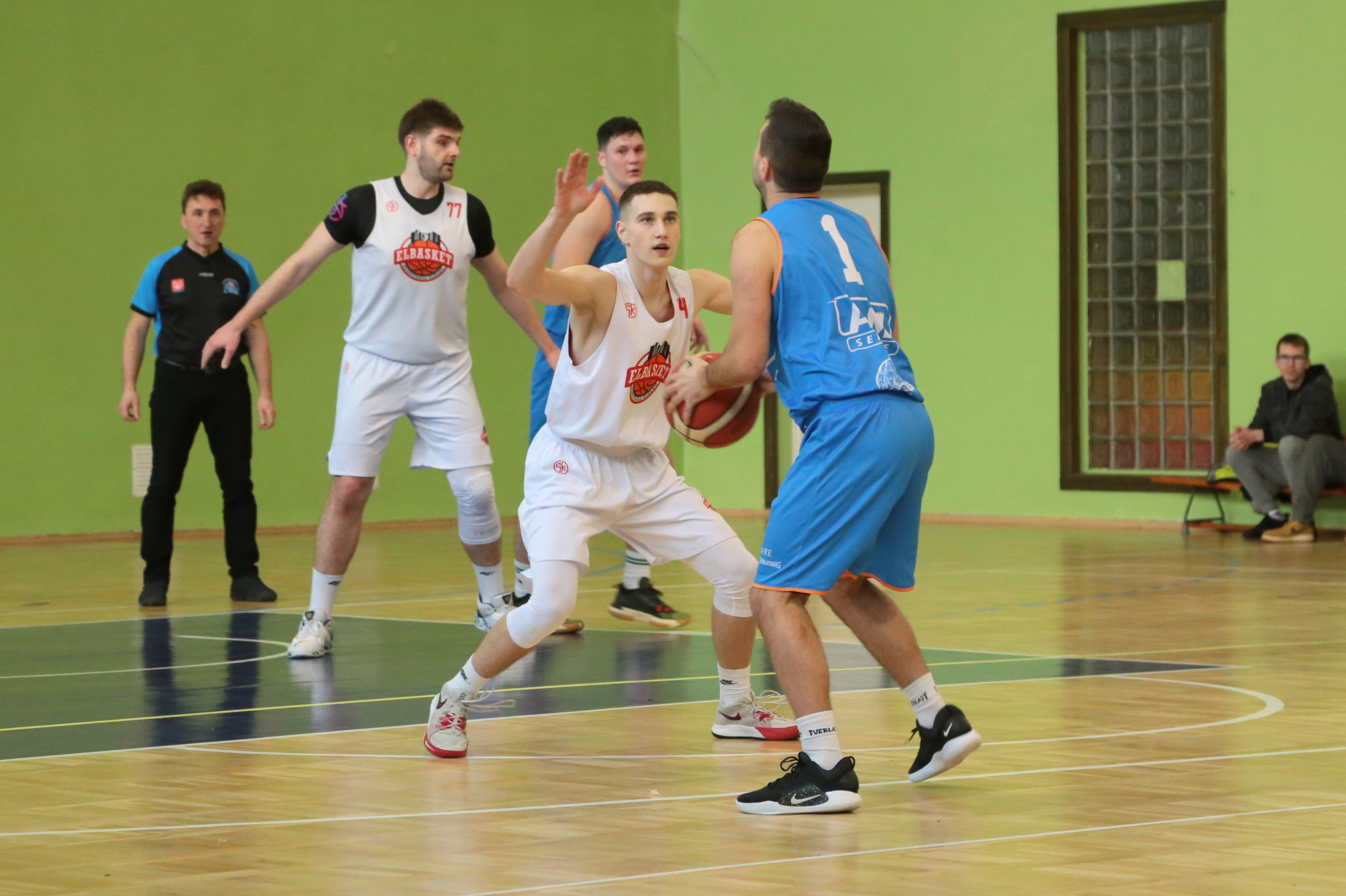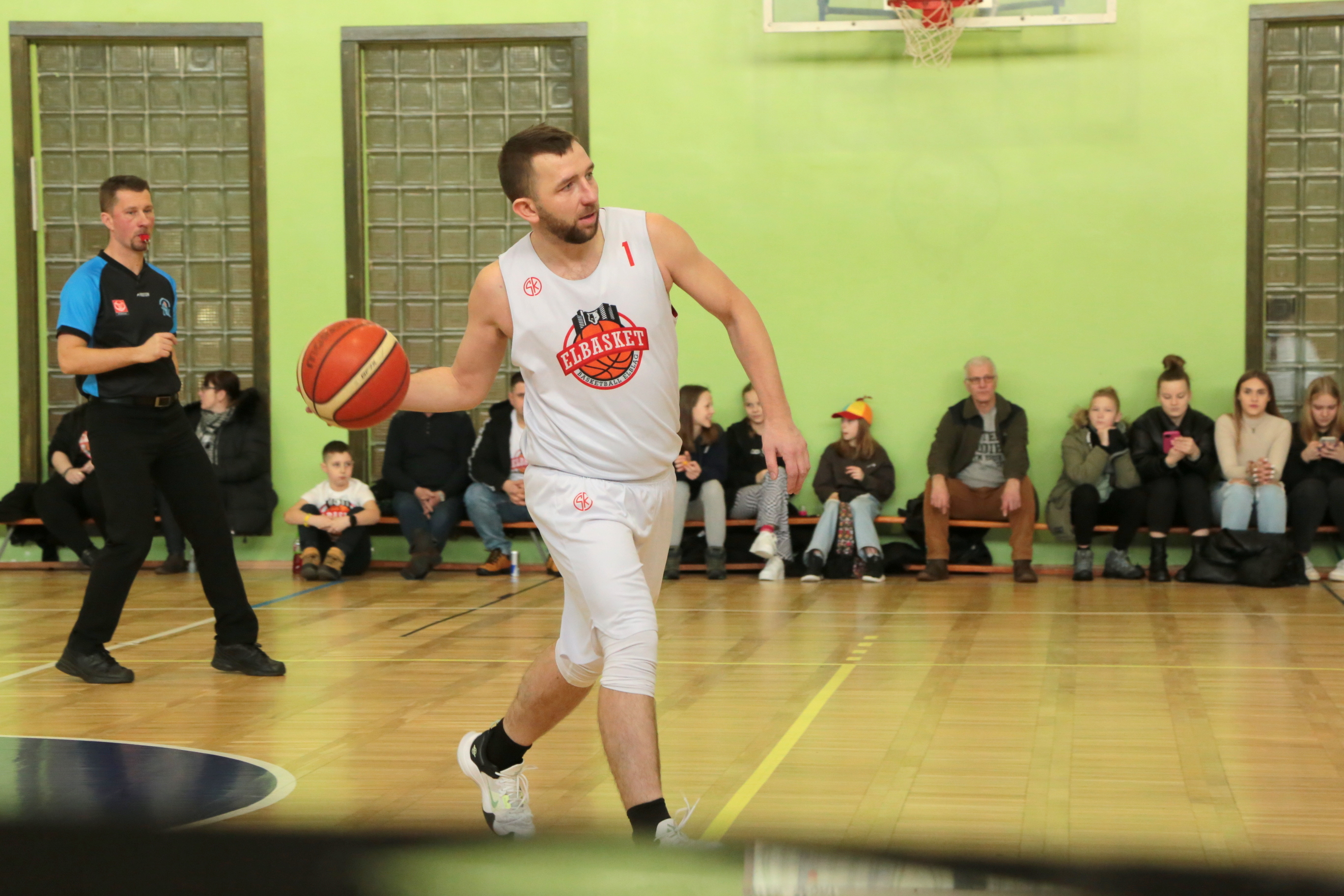 Początek starcia nie był jednak taki łatwy. Przyjezdni zaczęli trójką Markowskiego, chyba najlepszego na boisku, ale ElBasket szybko odpowiedział dwoma trafieniami Dominika Pawlaka. W pierwszych minutach ogółem gra miejscowym się nie kleiła. Przewaga była niewielka, a błędy irytowały trenera Arkadiusza Majewskiego. Trochę spokoju sprawiły trzy skuteczne akcje w dalszej części pierwszej kwarty, a rzut Kacpra Jastrzębskiego dał wynik 16:8.