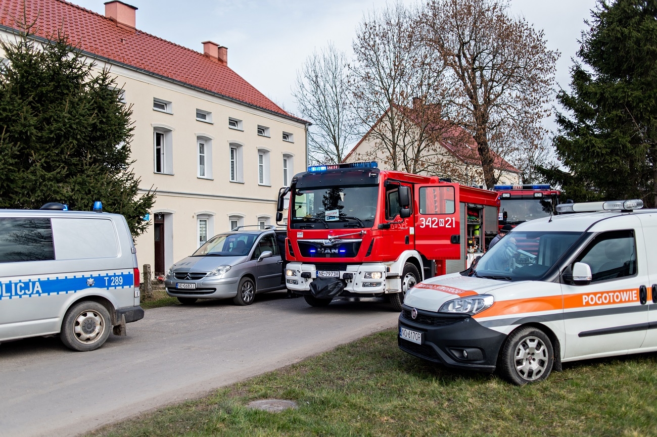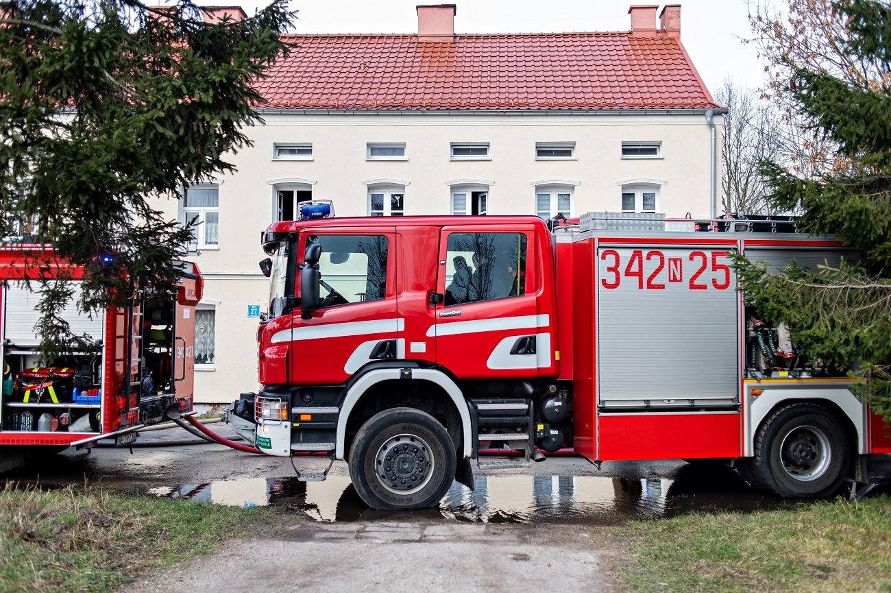 Strażacy po przybyciu na miejsce zdarzenia zastali rozwinięty już pożar mieszkania na I piętrze, ponadto z okien wydobywały się płomienie.