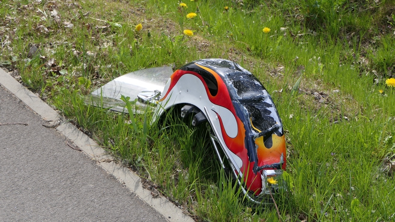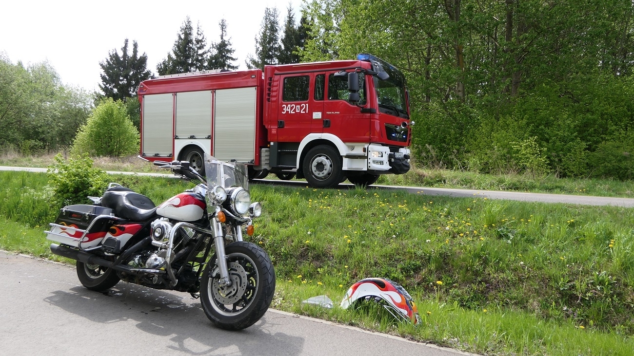 Jak się dowiadujemy na miejscu zdarzenia 36-letni mężczyzna jechał z 9-letnim dzieckiem motocyklem ulicą Fromborską w kierunku miejscowości Łęcze, na wysokości Krasnego Lasu z przyczyn technicznych pojazdu stracił nad nim panowanie w wyniku czego wjechał do pobliskiego rowu.