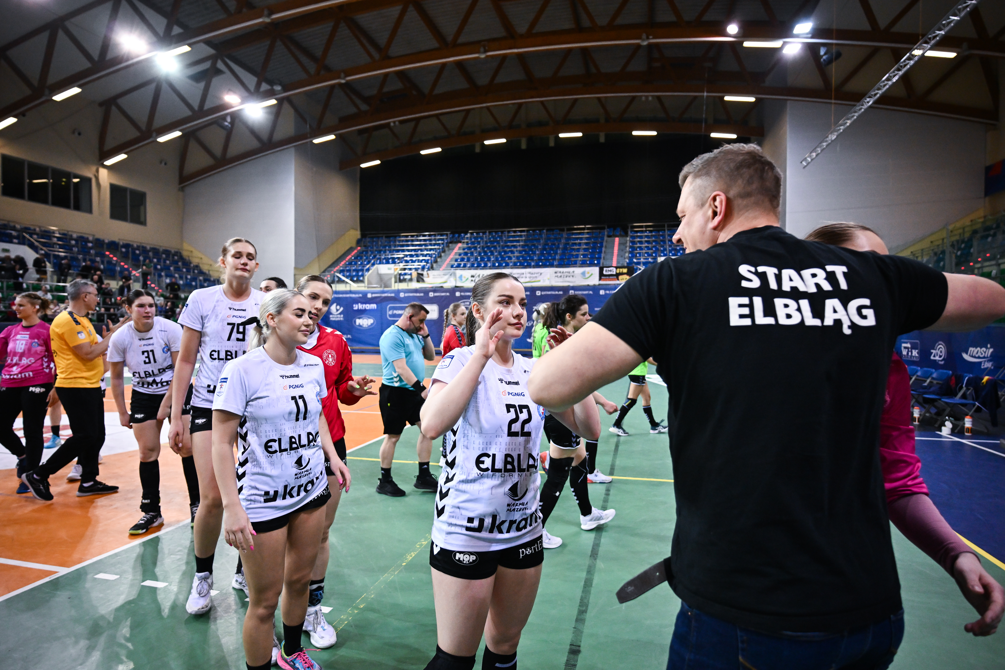 Iga Dworniczuk (EKS Start Elbląg): W pierwszej połowie byłyśmy trochę zestresowane, może lekko przemotywowane. Każda z nas bardzo chciała wygrać i ten mecz był dla nas bardzo ważny, stąd popełniłyśmy trochę więcej błędów. Na szczęście obudziłyśmy się w 15. minucie, szłyśmy bramka za bramkę i wiedziałyśmy, że w drugiej połowie odrobimy straty. Na drugą połowę wyszłyśmy jeszcze bardziej zmotywowane i chciałyśmy zagrać najlepiej jak potrafimy. Cieszymy się, że udało nam się wygrać.