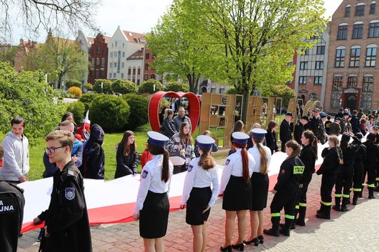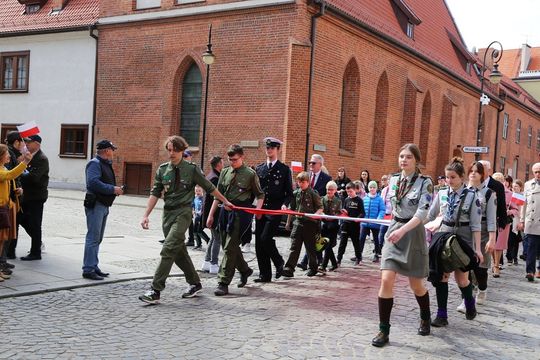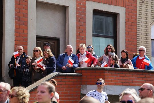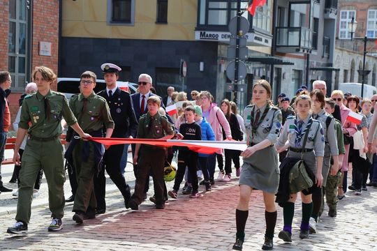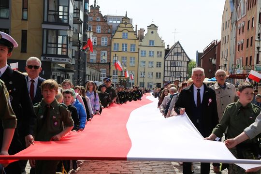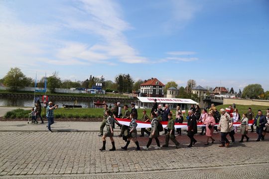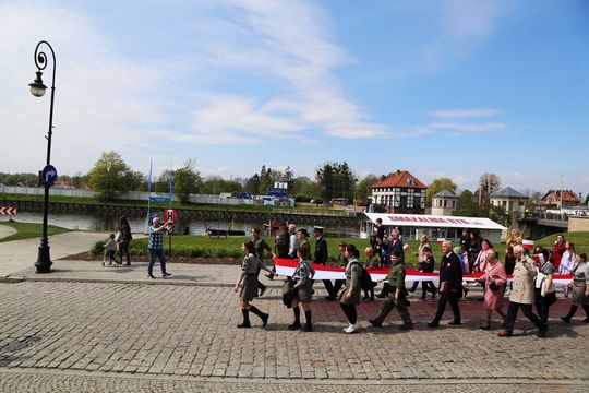 Około 200 osób wzięło udział w przemarszu z 50-metrową biało-czerwoną flagą. Wzorem lat ubiegłych mieszkańcom rozdawane były chorągiewki, w ten sposób elbląską starówkę zdominowały dziś kolory biały i czerwony.