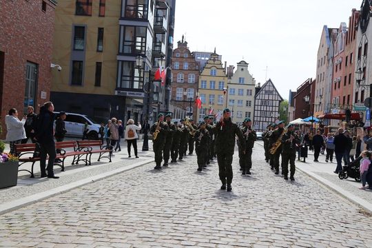 Przemarsz rozpoczął się przy napisie „Kocham Elbląg” przy ul. Wodnej. Następnie uczestnicy przeszli ulicami: św. Ducha, Stary Rynek przejdą w towarzystwie Orkiestry Wojskowej Garnizonu Elbląg pod Bramę Targową, na którą została wciągnięta flaga.