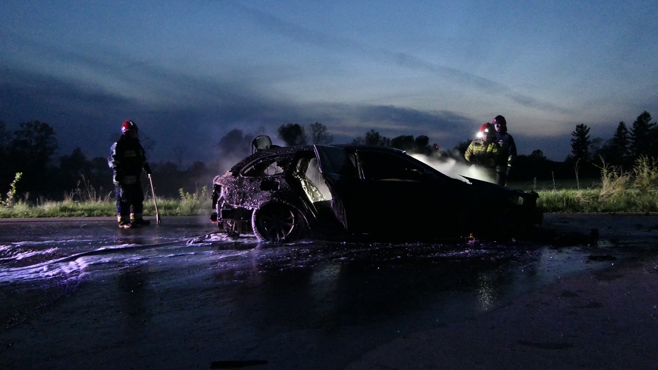 Kiedy straż pożarna dotarła na miejsce zdarzenia pojazd był już cały w ogniu, w wyniku pożaru auto doszczętnie spłonęło. Strażacy ugasili pożar i zabezpieczyli miejsce zdarzenia, teraz przyczyny pożaru wyjaśni policyjne dochodzenie.