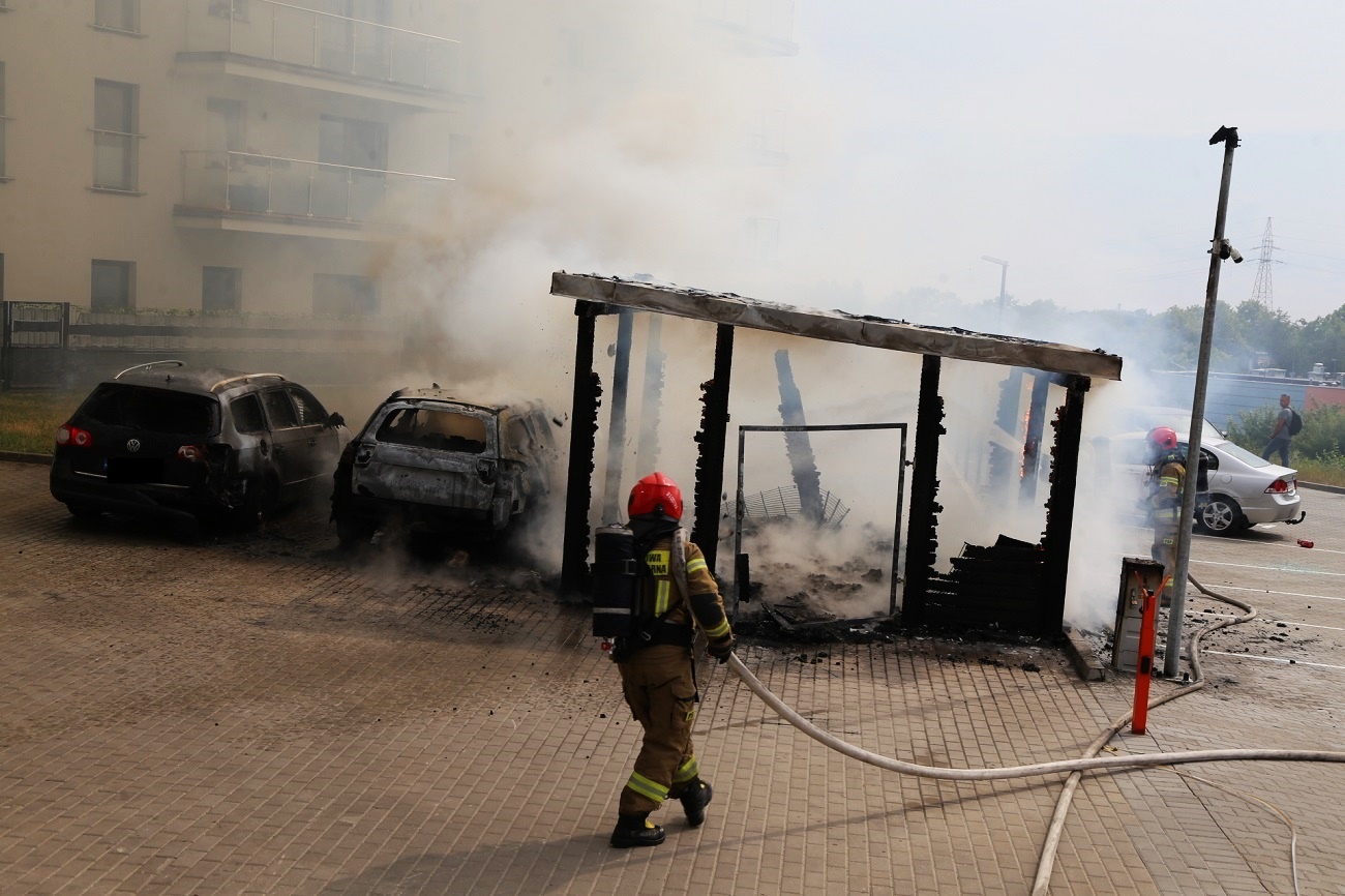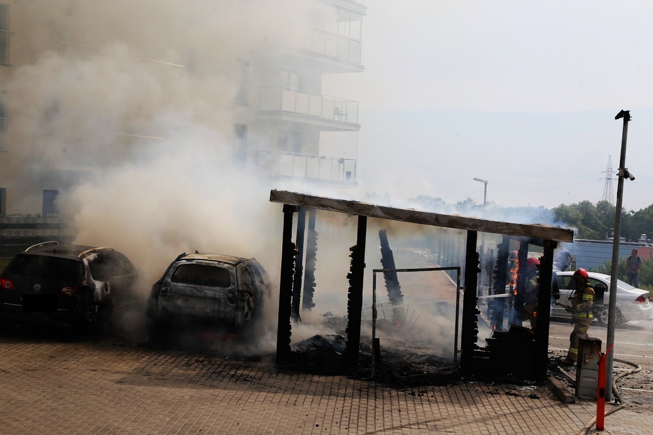 Do pożaru doszło na osiedlu Korona Elbląga przy skrzyżowaniu ulicy Królewieckiej z ulicą Częstochowską. Od pracującego na miejscu strażaka, który dowodził akcją ratunkową usłyszeliśmy, że spaleniu uległy :wiata śmietnikowa oraz pojazdy, które znajdowały się w pobliżu.