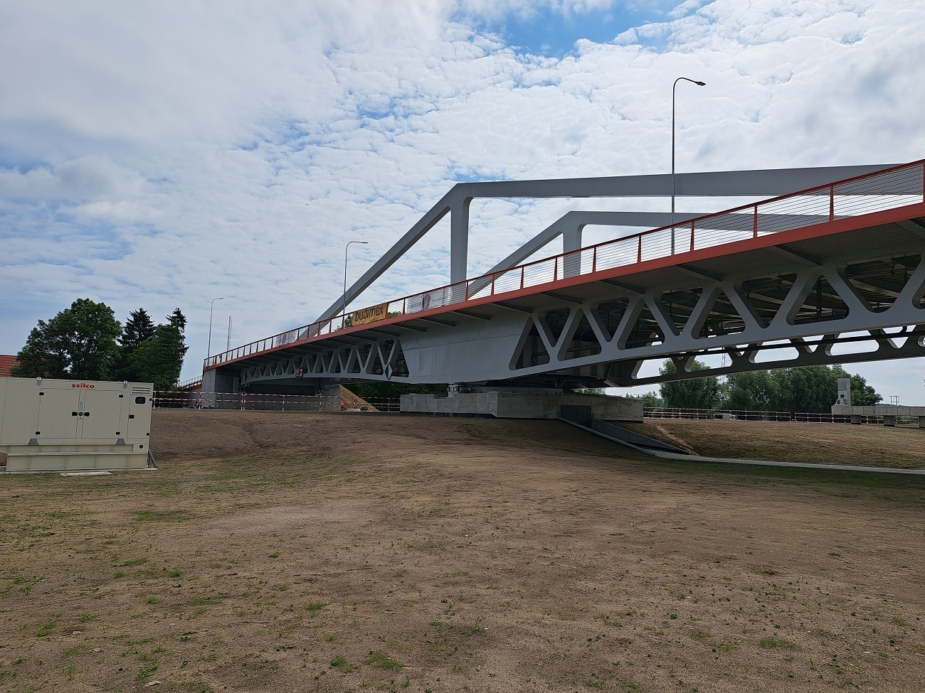 Nowy most to konstrukcja stalowa ważąca ponad 700 ton. Pośrodku na głównej podporze jest specjalne łożysko na którym realizowany jest obrót mostu. Jest to najdłuższy (103 m) z trzech mostów obrotowych, zaprojektowanych i wybudowanych w ramach drogi wodnej.
