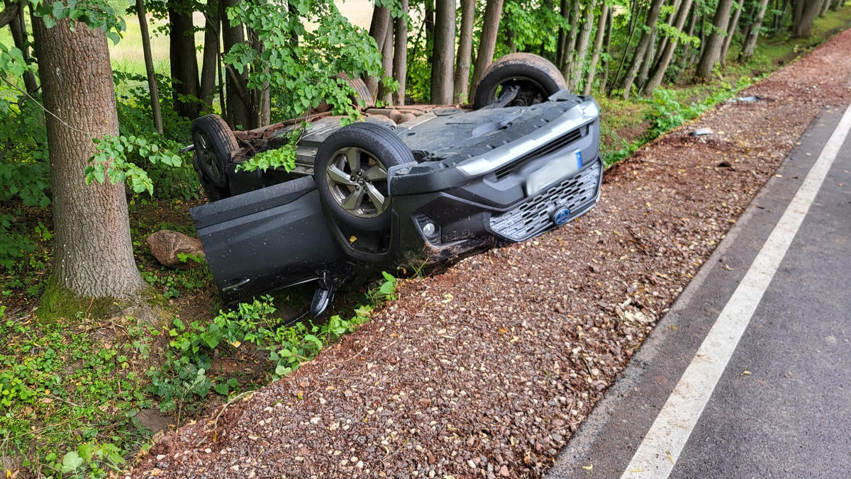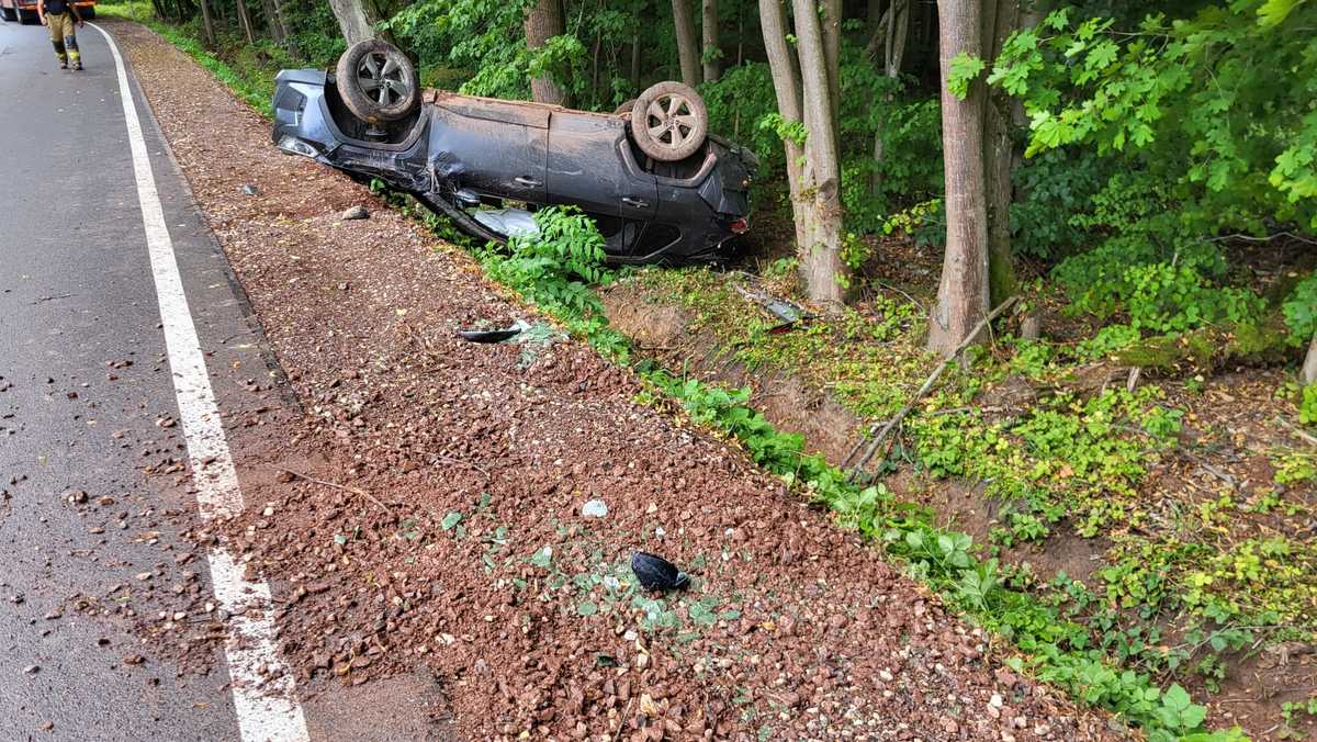 53-letnia kobieta straciła panowanie nad pojazdem, zjechała na przeciwległy pas ruchu, odbiła się od przydrożnego drzewa, po czym wjechała do rowu, gdzie pojazd dachował. Wraz z nią samochodem podróżowało dwoje pasażerów.