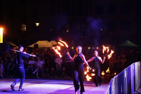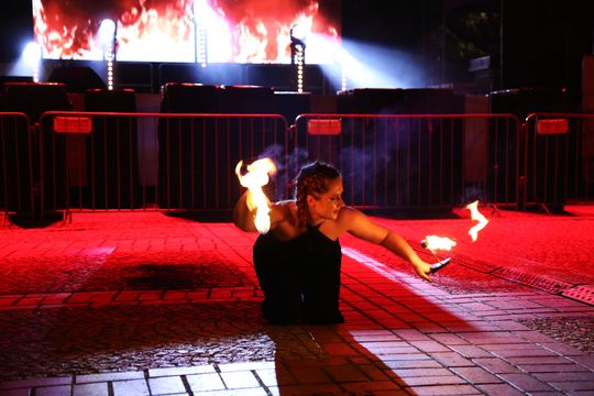 Pierwszy dzień zakończył się spektaklem ognia i sztuki cyfrowej. Poniżej zdjęcia.