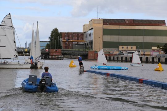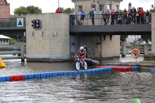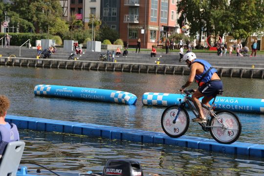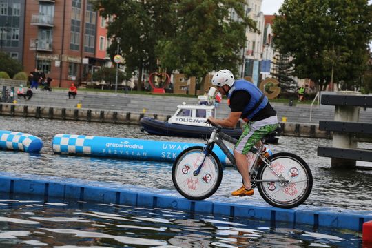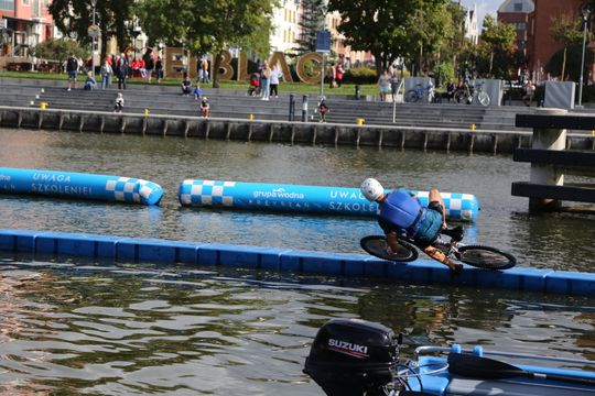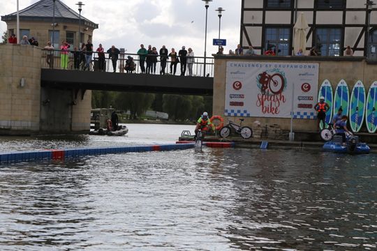 Splash Bike Challenge polega na przejechaniu rowerem kładki na wodzie. W Elblągu znaleźli się śmiałkowie, którzy spróbowali swoich sił. Spektakularne skoki do wody, akrobatyczne wpadki i sporo dobrej zabawy.