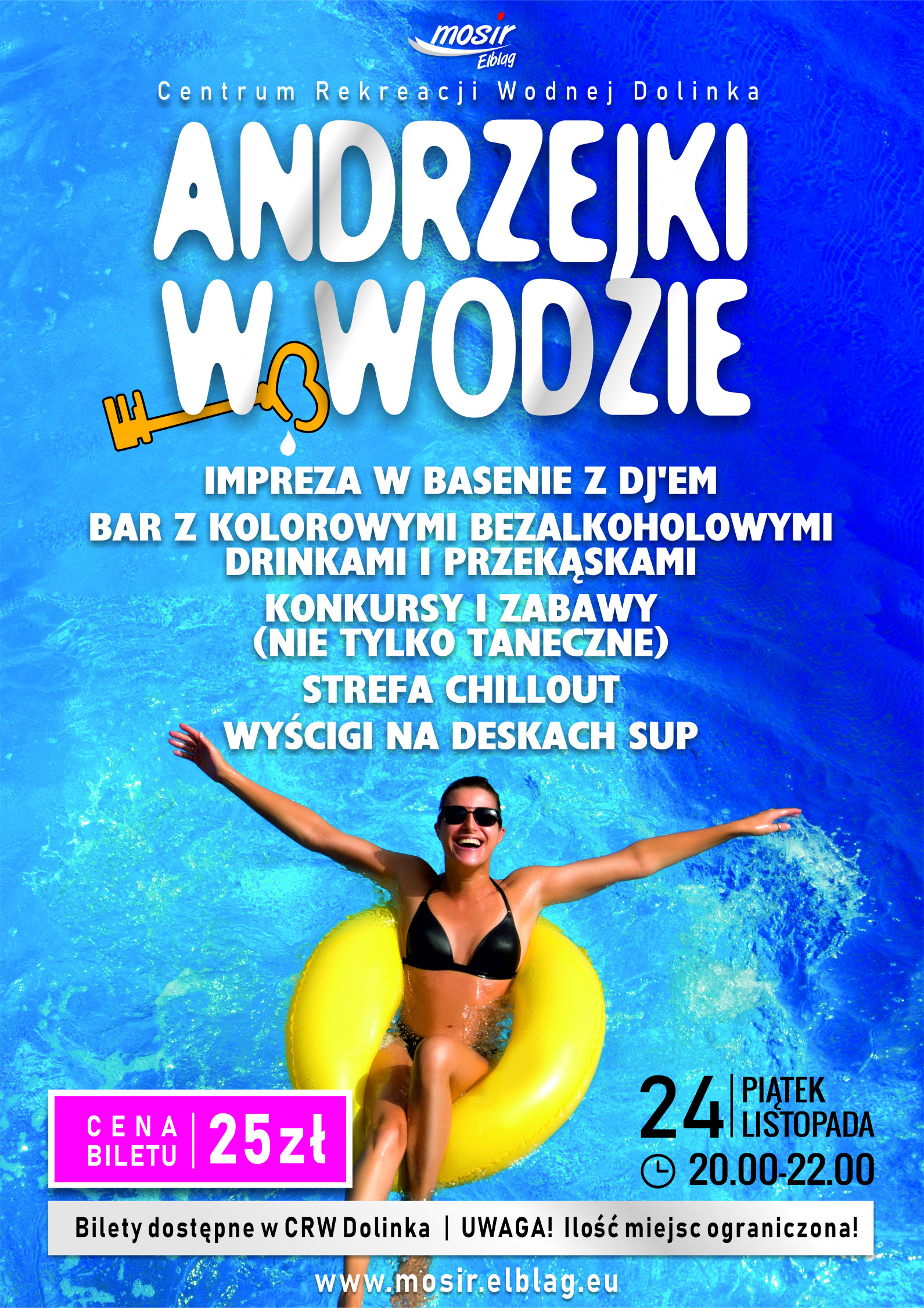 Andrzejki w Wodzie odbędą się w piątek, 24 listopada. Impreza rozpocznie się o godzinie 20:00 i potrwa do 22:00. Koszt biletu na wydarzenie to 25 złotych. Wejściówki można kupić bezpośrednio w kasie CRW Dolinka. Uwaga: liczba miejsc ograniczona, więc zachęcamy do szybkiego zakupu.