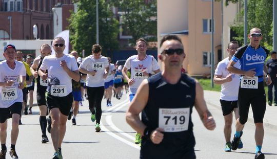Uczestnicy XI Elbląskiego Ulicznego Biegu Piekarczyka startowali na dystansie 10 km (dwie pętle po 5 km).