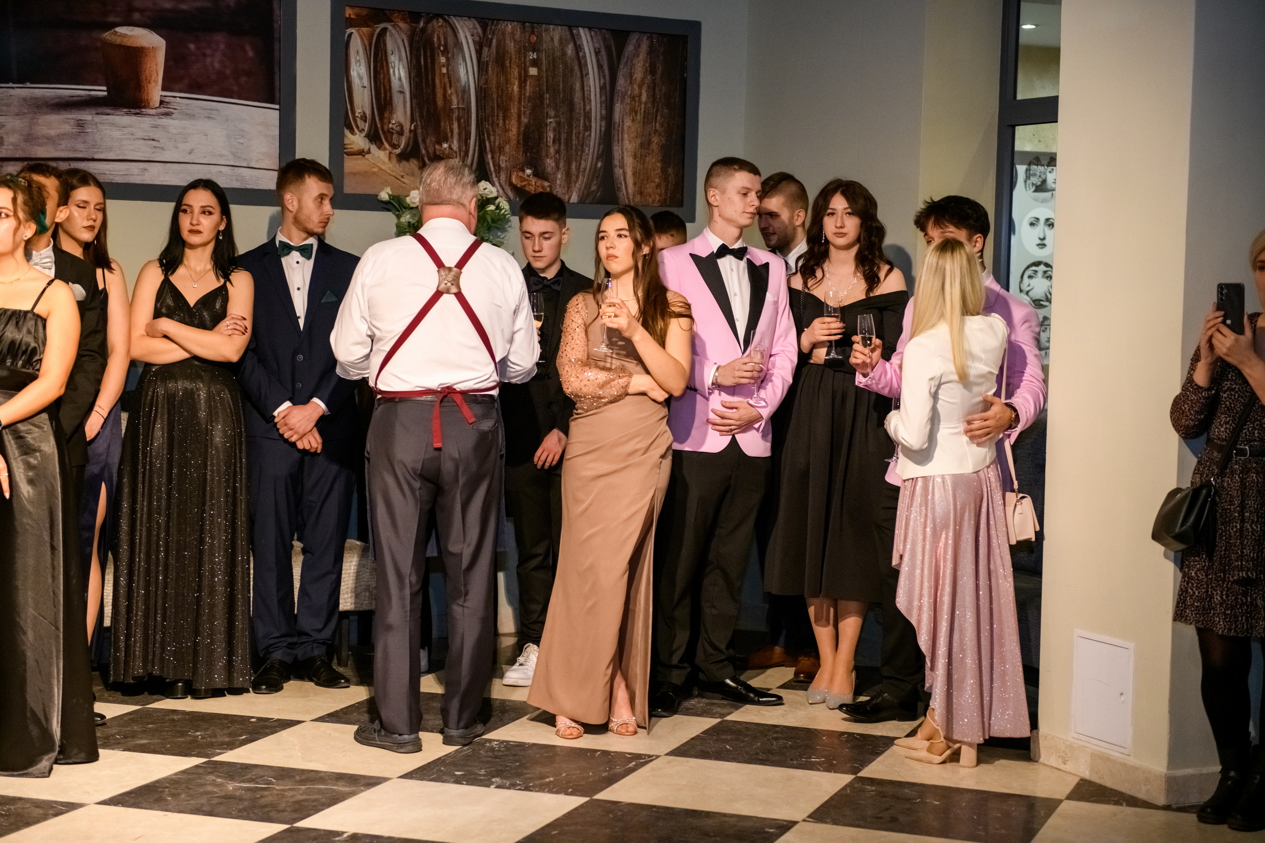"To zaszczyt dzisiaj z Wami być na tym niezwykłym balu studniówkowym. To wielka radość móc z Wami dzielić się tą wyjątkową chwilą, w której tak wyraźnie widać, że z nastolatków, którzy 4 i pół roku temu przekroczyli próg naszej szkoły, stali się dorosłymi ludźmi. Symboliczne 100 dni dzieli nas od tak ważnego w Waszym życiu egzaminu maturalnego. (...) Wielu z nas patrzy dzisiaj na Was z nostalgią, chcielibyśmy tak jak Wy poczuć te urocze bicie serca, które towarzyszyło Wam podczas przygotowań do balu, a potem ten zastrzyk adrenaliny przystępując do matury. To wspaniałe uczucie kojarzy nam się przede wszystkim z młodością. (...) Wszyscy życzymy Wam wspaniale zdanej matury, ale oprócz nauki, ocen, czy wyników, ważne są również marzenia i dążenie do ich urzeczywistnienia. Życzę Wam, aby podczas Waszej wędrówki przez życie nie zabrakło: miłości, przyjaźni, empatii i dobra, którym będziecie się dzielić z innymi, bo najważniejszy w życiu jest egzamin z człowieczeństwa"