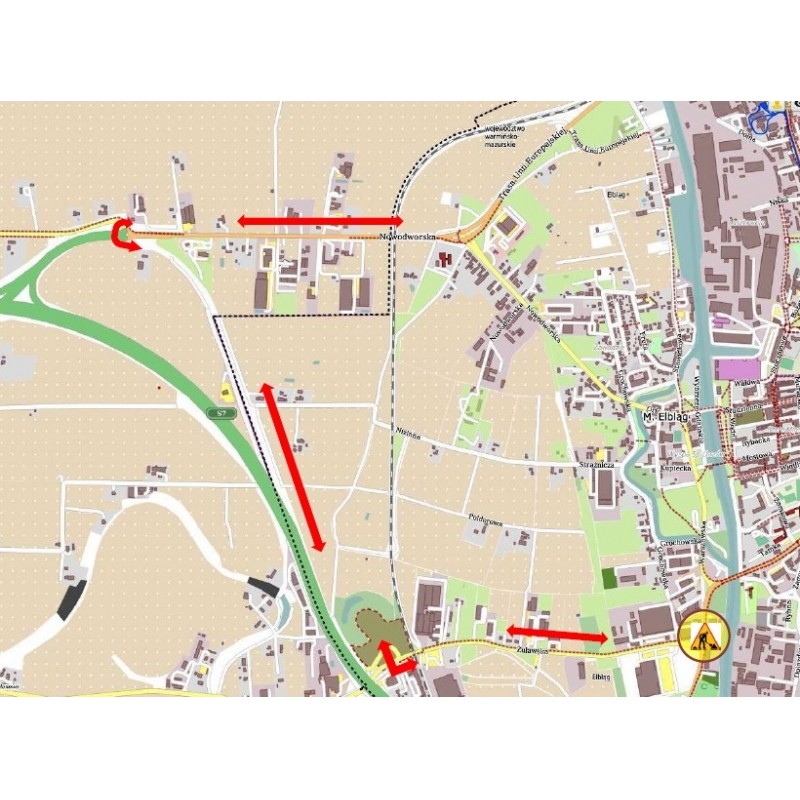 W dalszym ciągu na przedmiotowym skrzyżowaniu ruch odbywać się będzie jak na zwykłym skrzyżowaniu z podporządkowanym wlotem ul. Żuławskiej. Ruch na skrzyżowaniu odbywać się będzie zgodnie z przedstawionym schematem. Zarząd Dróg przypomina, że możliwy i zalecany (w szczególności dla mieszkańców północnych dzielnic miasta) jest alternatywny dojazd do ul. Żuławskiej tj. ulicą Nowodworską, przez rondo na węźle Elbląg Zachód i drogą serwisową wzdłuż S7 na ul. Żuławską.