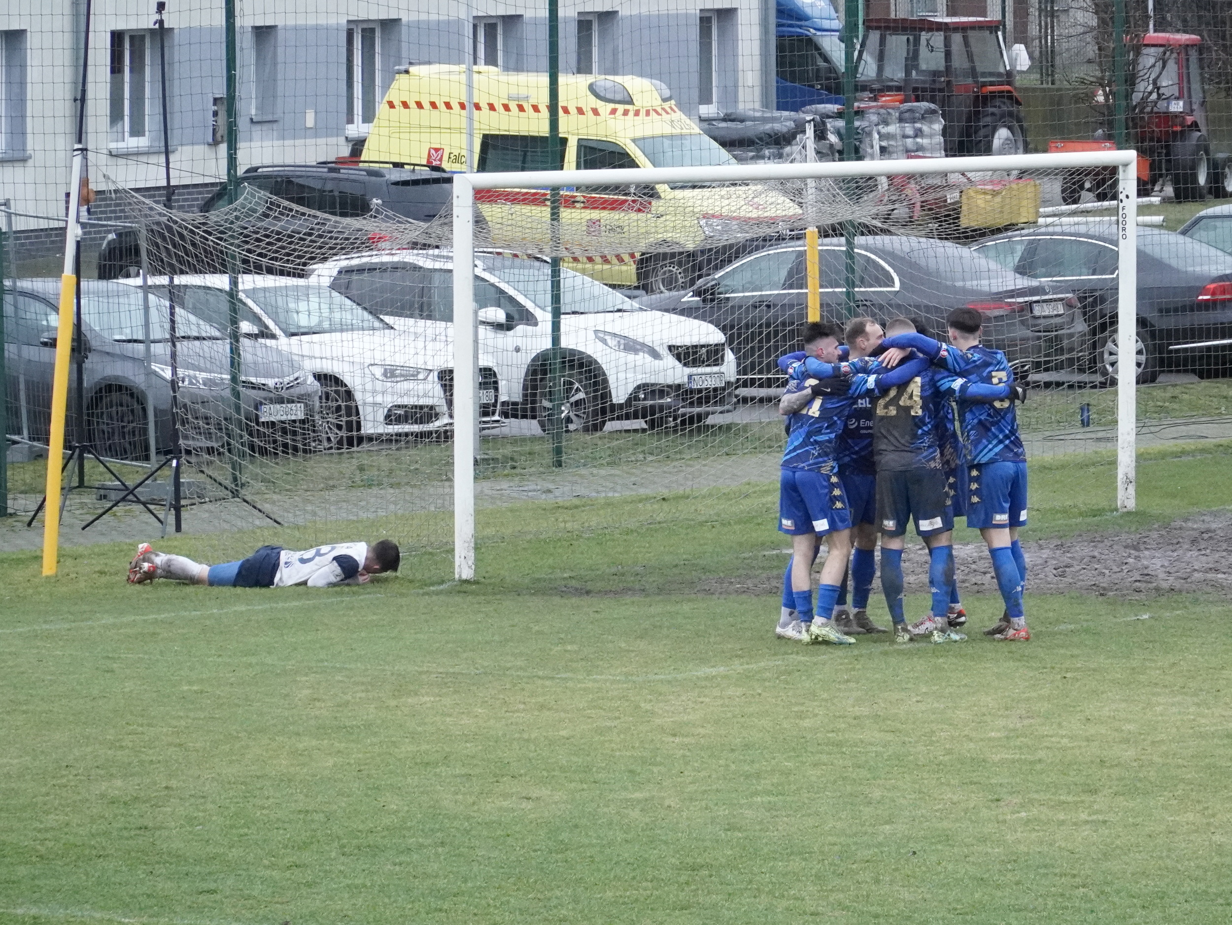 Wydawało się, że Olimpia kontroluje przebieg meczu, ale w 27 minucie, po wślizgu Dawida Danilczyka, sędzia podyktował rzut karny. Swoją drogą trudno powiedzieć, czy był faul, ale wślizg był wykonany raczej w niegroźnej sytuacji. Jedenastkę obronił Andrzej Witan, ale odbita przez niego piłka… zatrzymała się w błocie. Skorzystał z tego Maciej Mas, dobijając strzał. W końcówce Olimpia zaatakowała, ale obronną ręką wychodził golkiper gości.