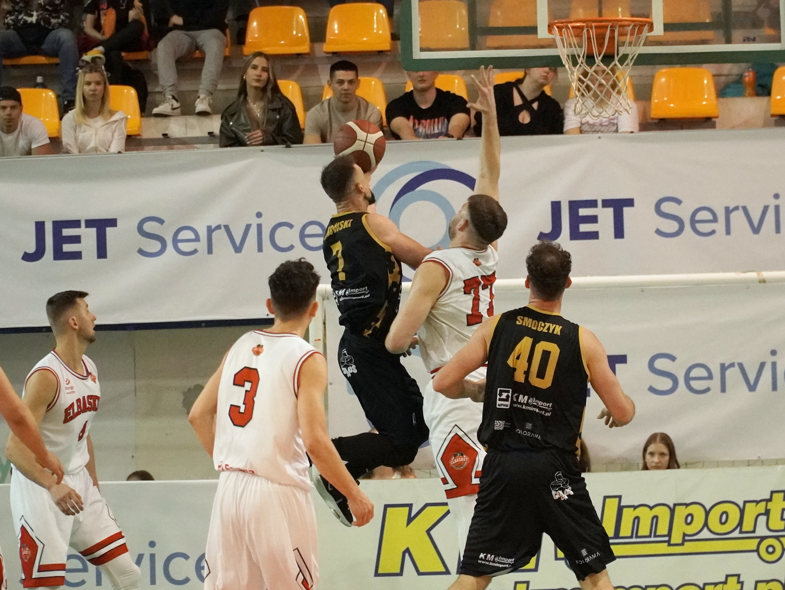Elbasket kończył punktem zdecydowaną większość swoich akcji. Piotr Prokurat szybko trafił dwa razy, a później Kacper Szuszkiewicz przycelował z dystansu. Przewaga była nieduża, ale pewność siebie naszych koszykarzy rosła. Rywal doskoczył tak naprawdę jeszcze tylko raz, gdy w 5 minucie tej odsłony meczu, Tomasz Pochylski pobudził trybuny celną trójką. 51:47 i początek odjazdu… przyjezdnych.