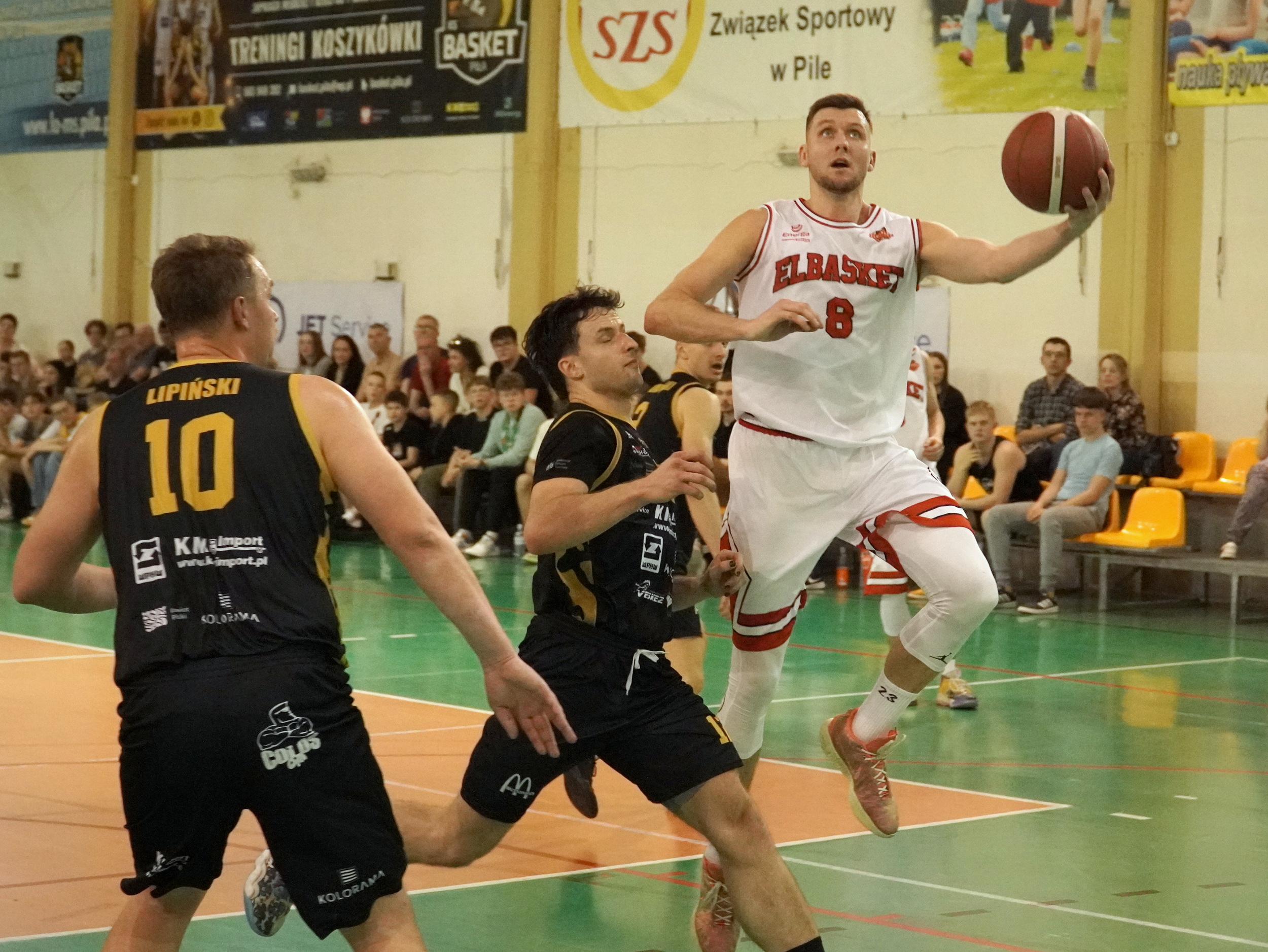 Druga część to odwrócone role. Nasi gracze musieli zregenerować siły, a Basket Piłka konsekwentnie odrabiał dystans. Można powiedzieć, że na każdą skuteczną akcję elblążan, gospodarze odpowiadali dwoma. W zasadzie, równo z syreną kończącą tę kwartę, Tomasz Pochylski, najlepszy gracz miejscowych, rzucił za trzy i zrobiło się tylko 41:38.