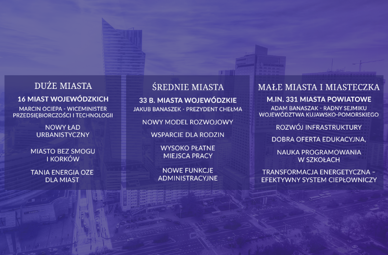 Jedną z głównych propozycji dla średnich miast jest tzw. deglomeracja, czyli przeniesienie do byłych miast wojewódzkich niektórych centralnych urzędów. Ministerstwo Przedsiębiorczości i Technologii Pani Minister Jadwigi Emilewicz przygotowało listę ponad 30 takich instytucji oraz listę potencjalnych miast. Jest na niej także Elbląg, choć dziś za wcześnie, żeby mówić o szczegółach."