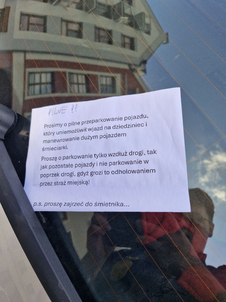 "Prosimy o prawidłowe parkowanie pojazdów, ponieważ poza grożącym Wam mandatem, utrudniacie innym ich pracę"
