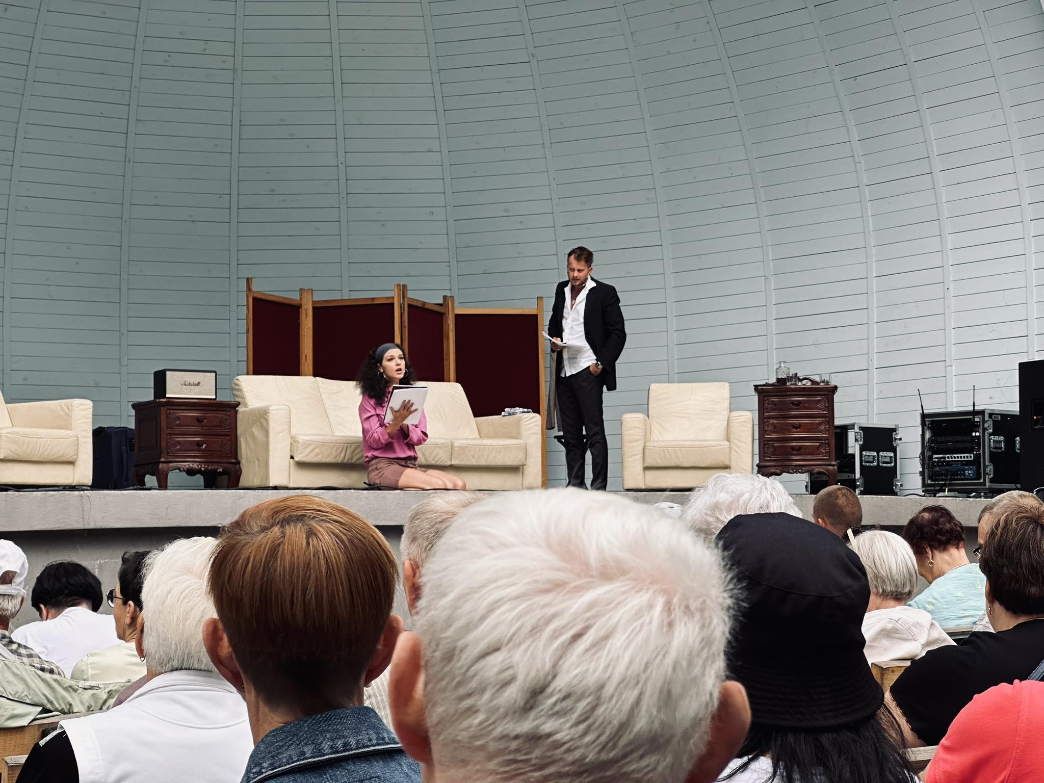 W tę niedzielę, 3 sierpnia, w Bażantarni, w muszli koncertowej, można było obejrzeć spektakl w formie „sceny przy stoliku”. Na scenie wystąpili znani aktorzy elbląskiego Teatru im. Aleksandra Sewruka – Karina Węgiełek oraz Mikołaj Ostrowski. Artyści zaprezentowali tekst dramatyczny autorstwa Murray’a Schisgal’a pt. „Spróbujmy jeszcze raz”, w tłumaczeniu Bożeny Sławińskiej. Przedstawienie nosiło tytuł „Żonaci kochankowie” i poruszało temat skomplikowanych relacji międzyludzkich.