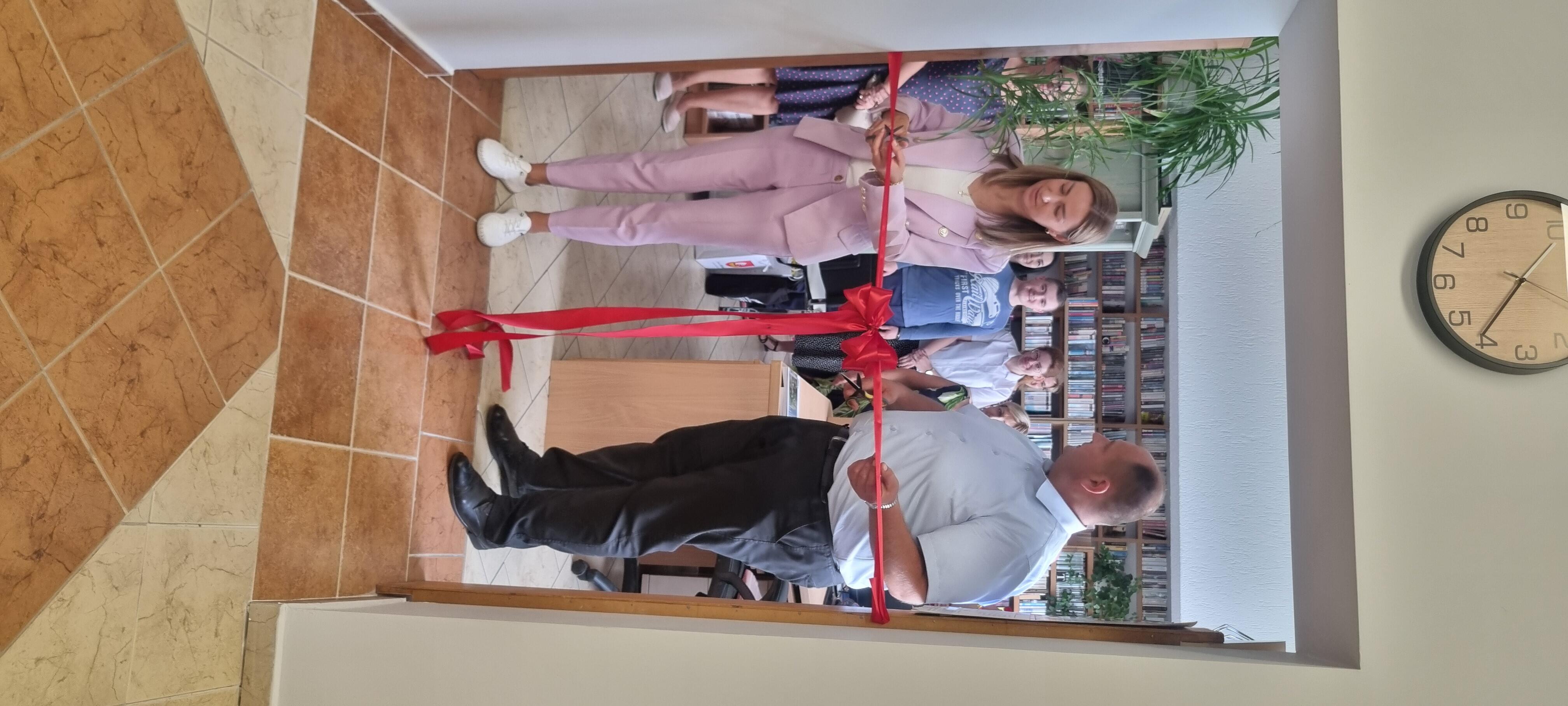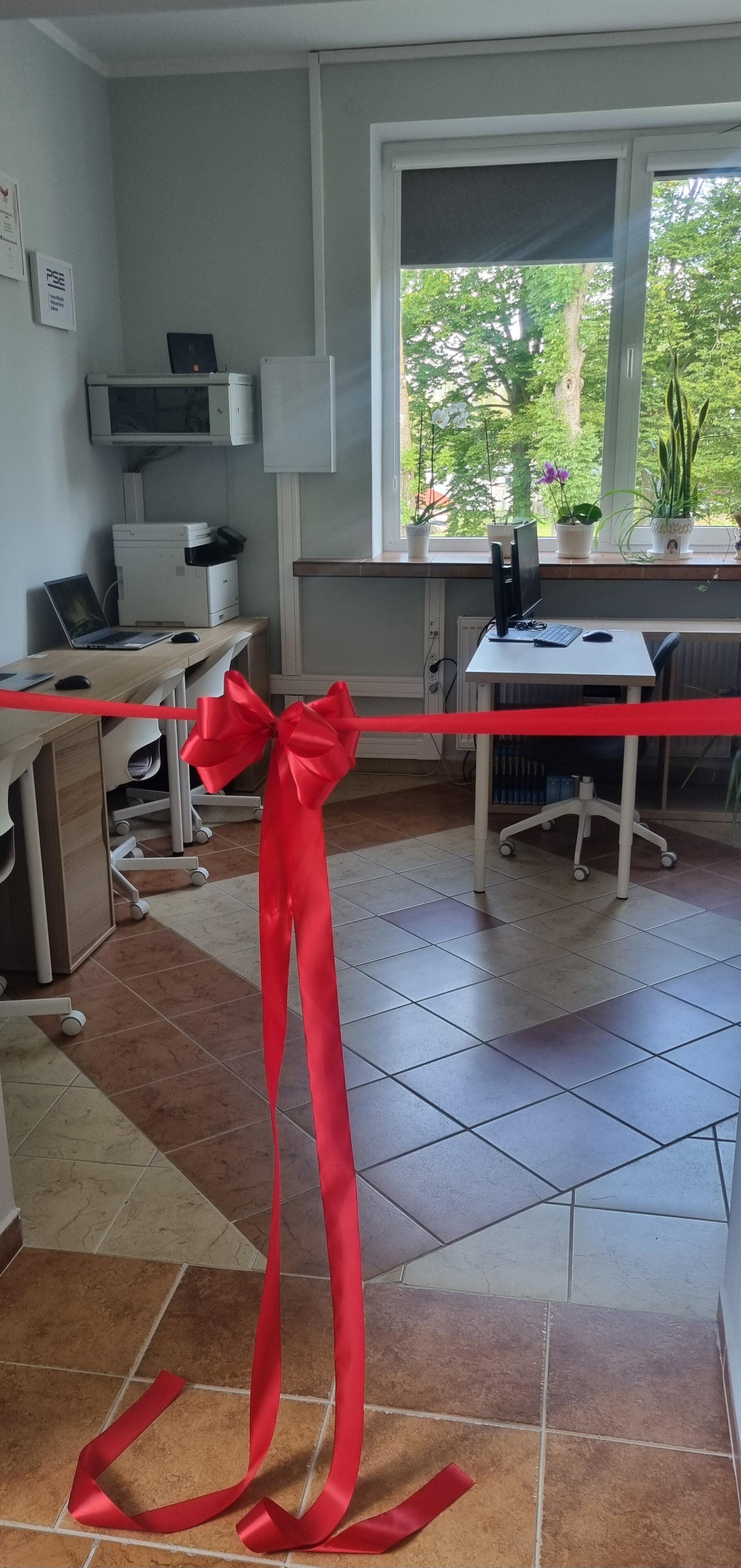 Przed wejściem do nowego pomieszczenia, odbyło się uroczyste przecinanie wstęgi. Na gości czekał także słodki poczęstunek.
