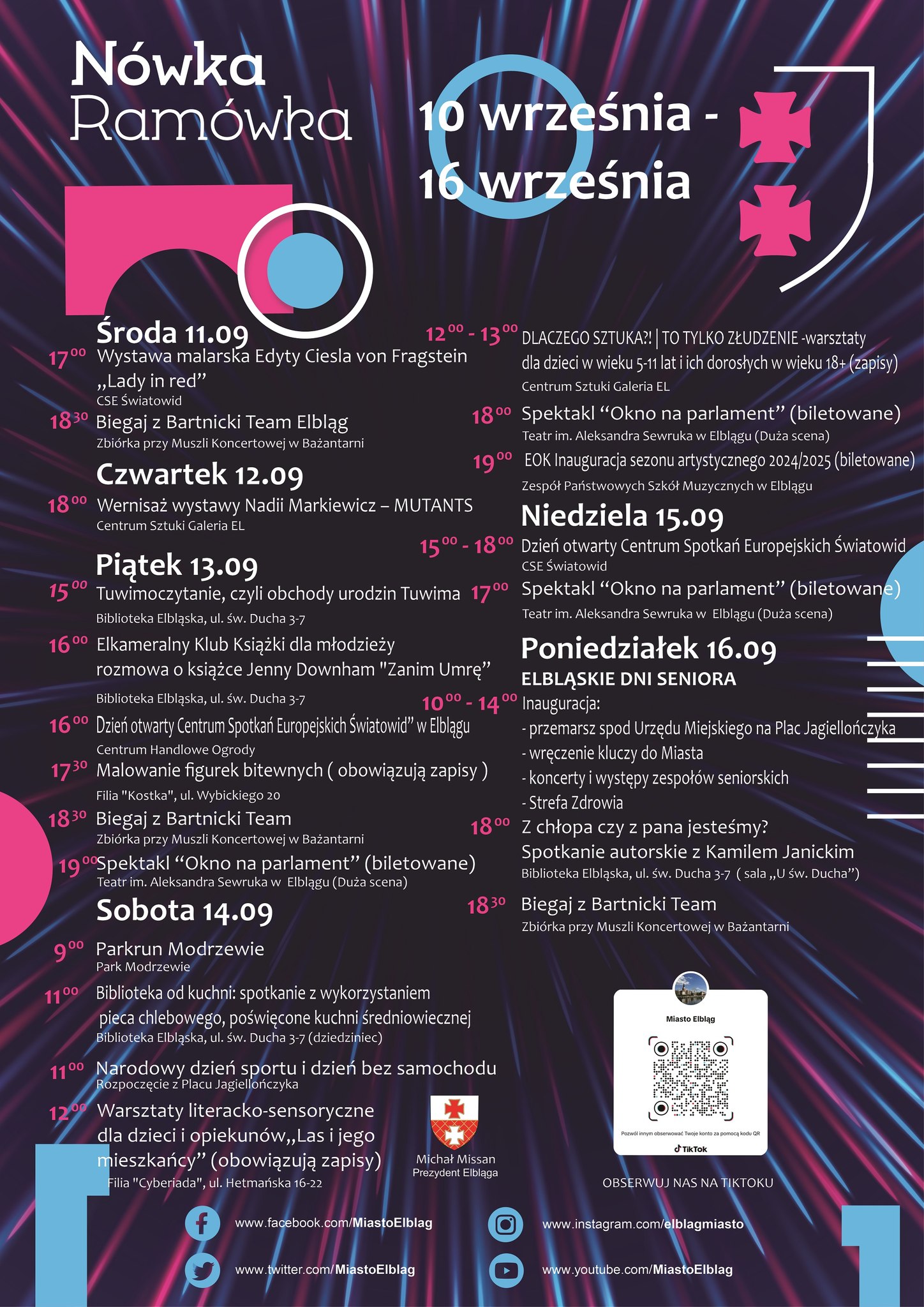 11.00 Narodowy Dzień Sportu i Dzień bez samochodu – Pl. Jagiellończyka ( ze względu na niekorzystne warunki atmosferyczne impreza została przeniesiona na 21.09)