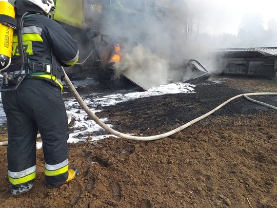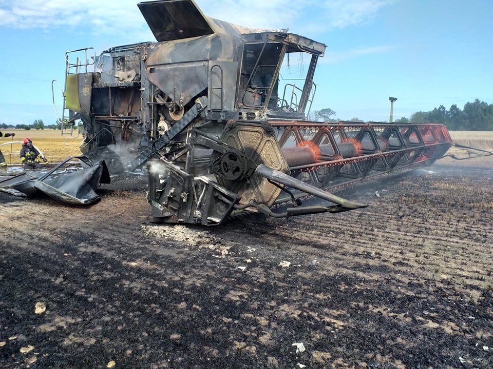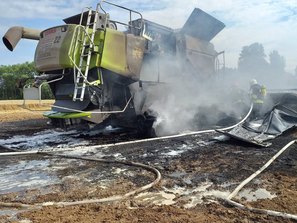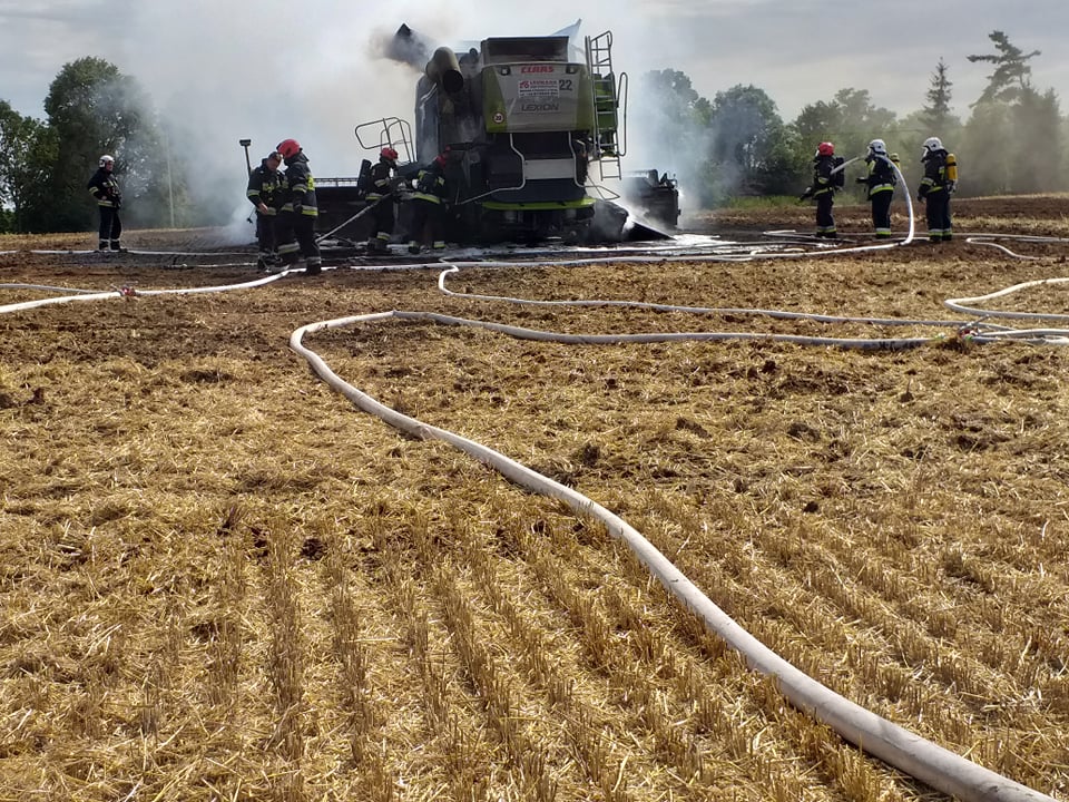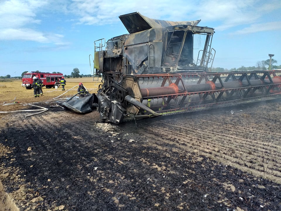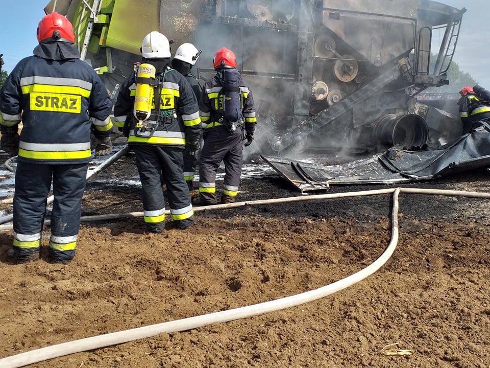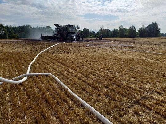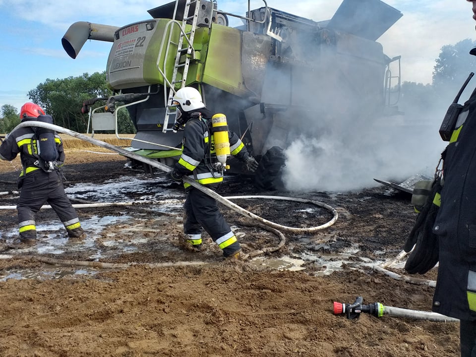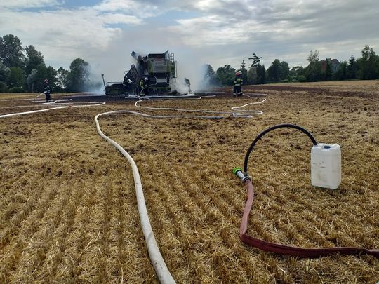 Strażakom udało się zapanować nad ogniem, jednak kombajn w wyniku pożaru spłonął doszczętnie.