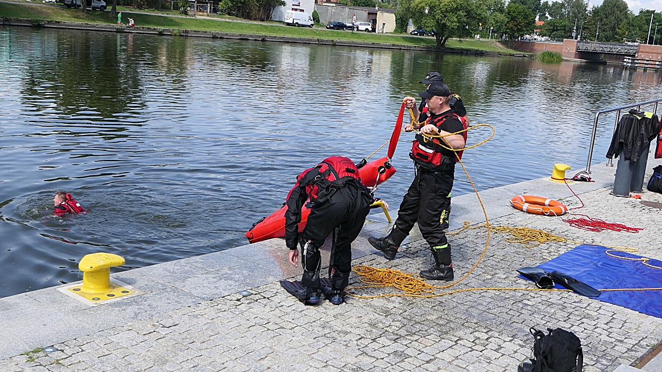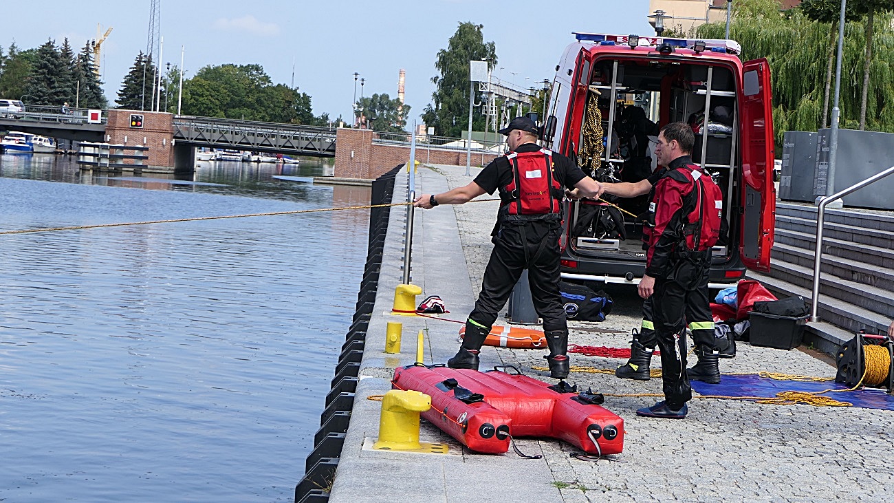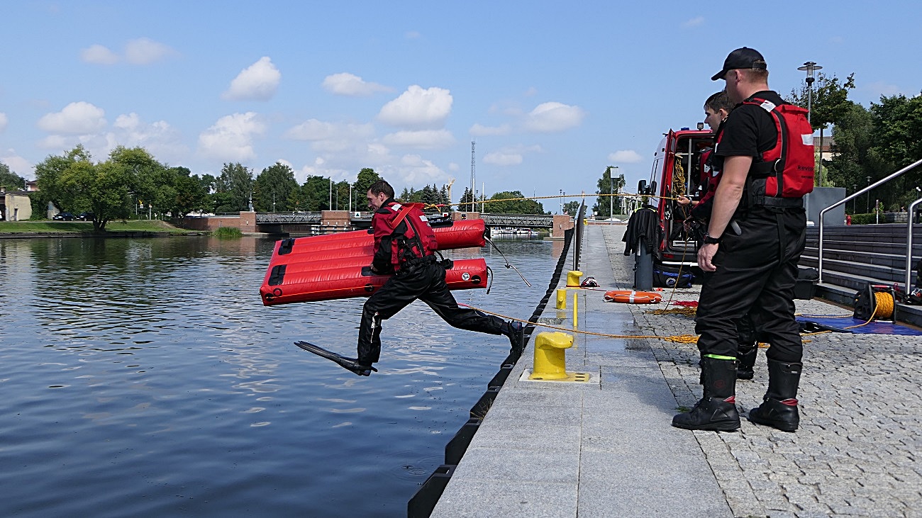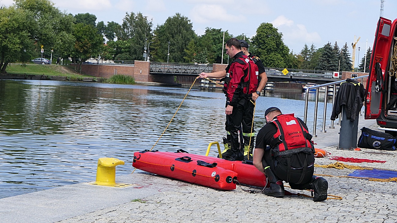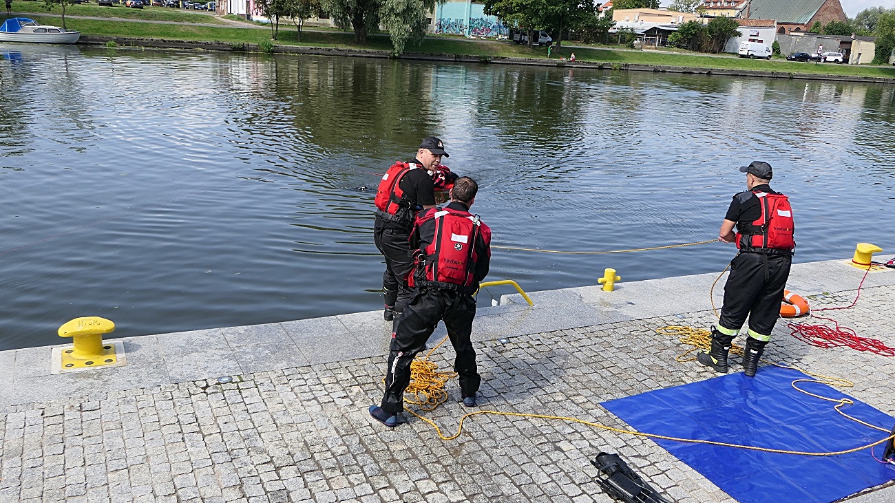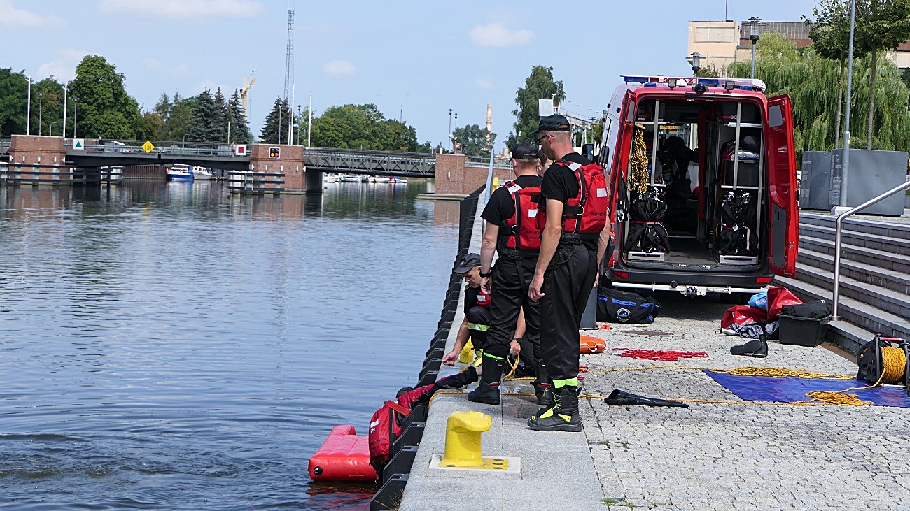 Poniżej zdjęcia z dzisiejszych ćwiczeń strażaków w rzece Elbląg.