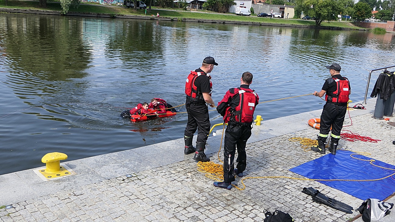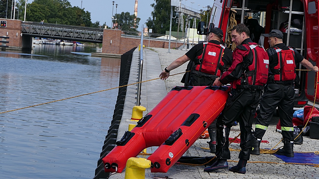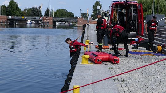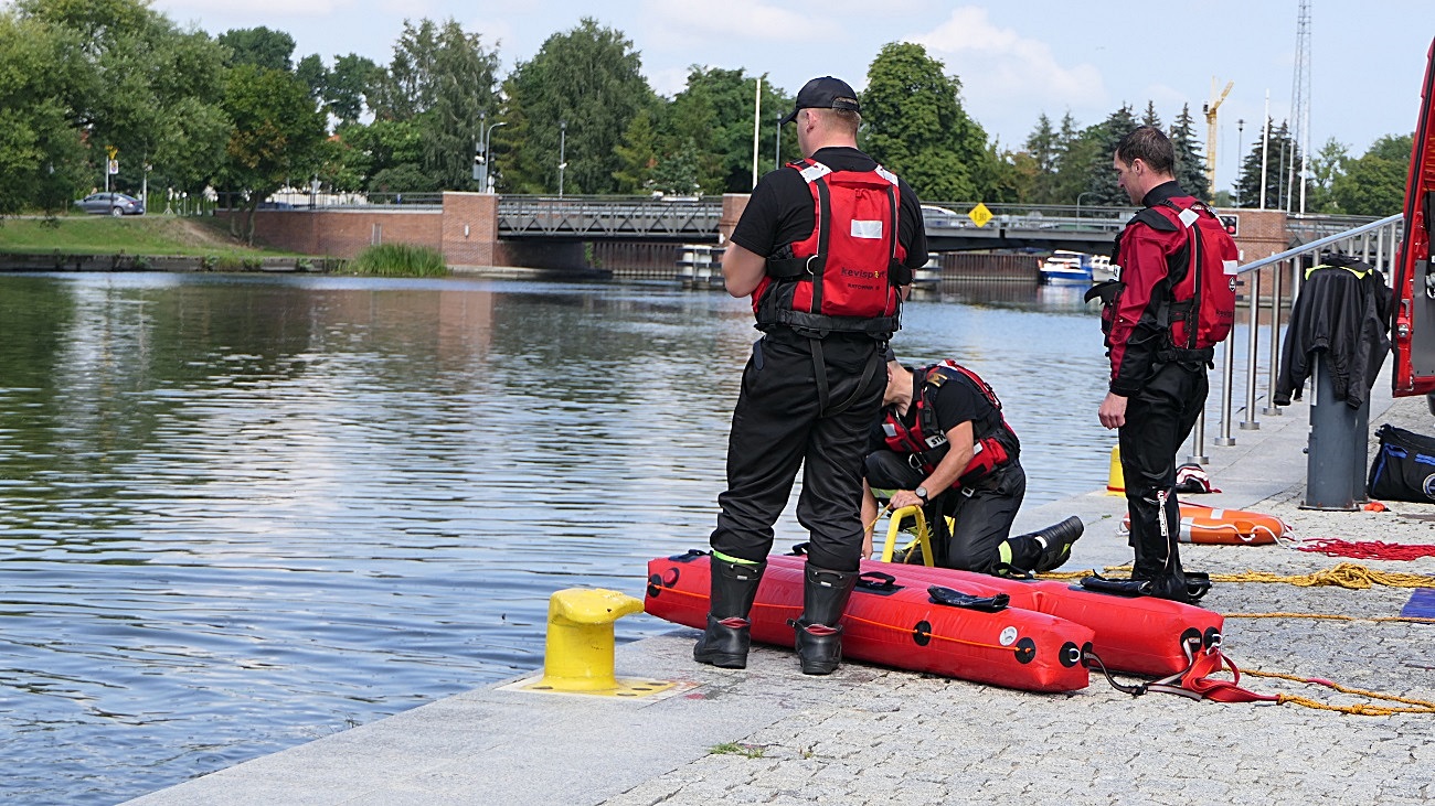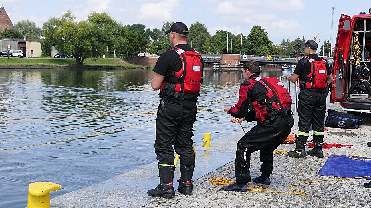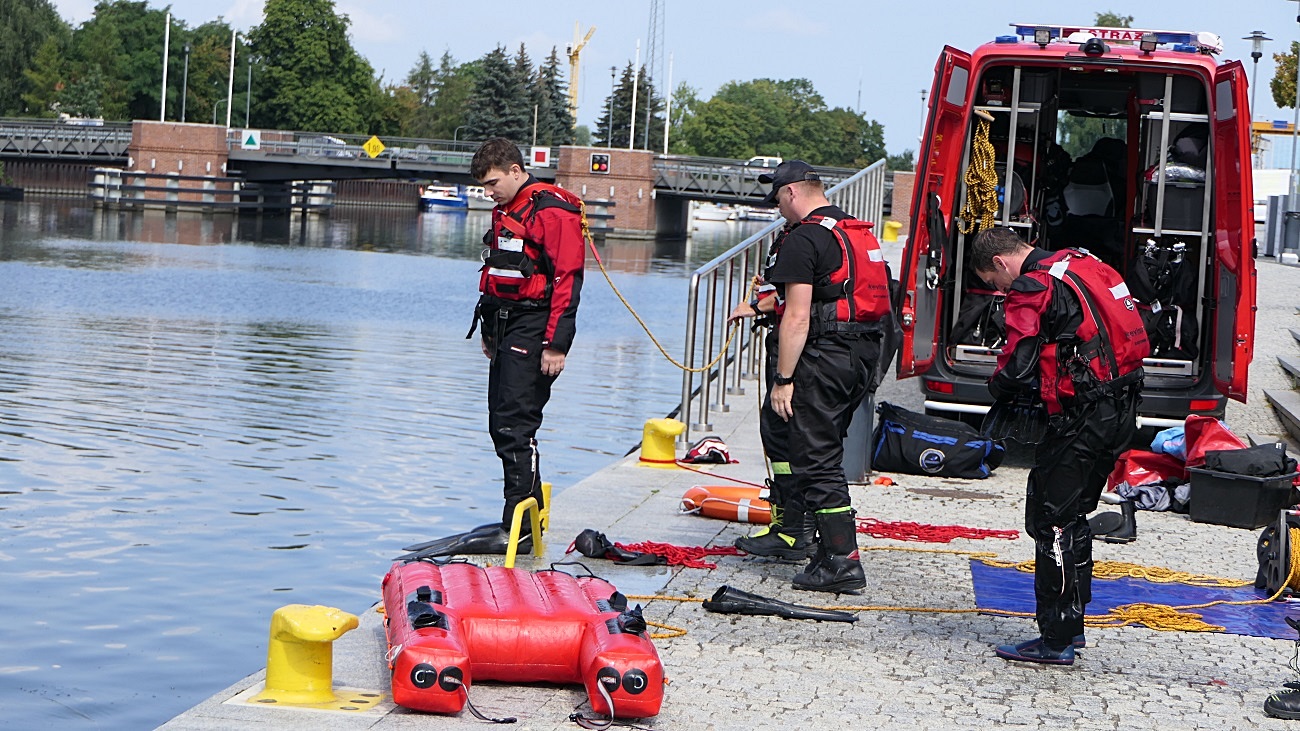 Poniżej zdjęcia z dzisiejszych ćwiczeń strażaków w rzece Elbląg.