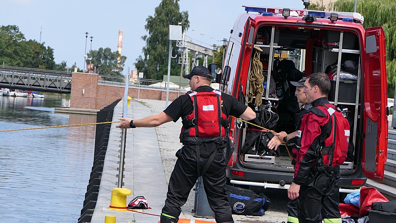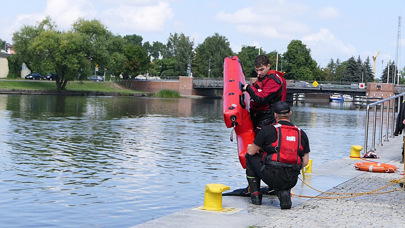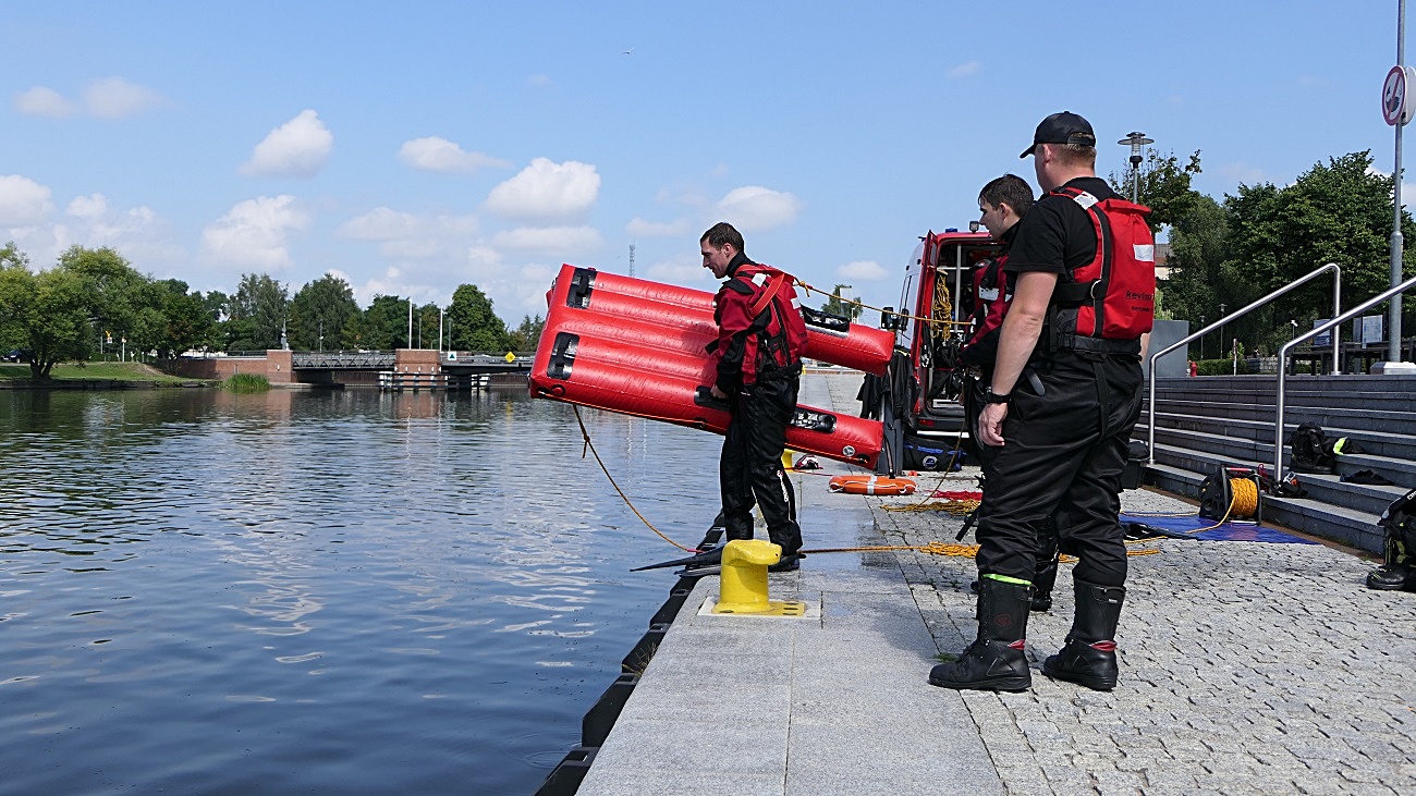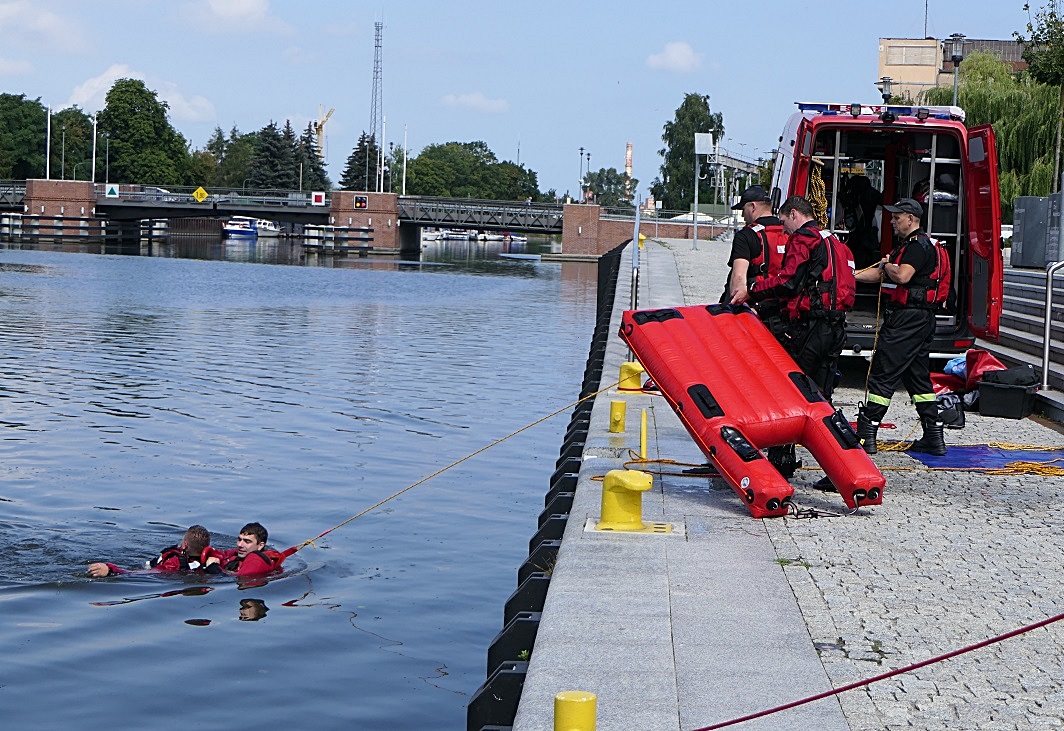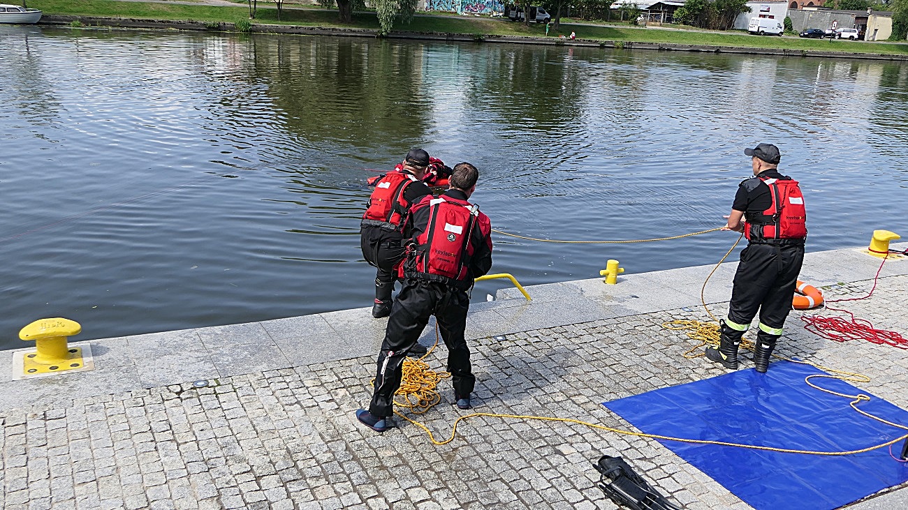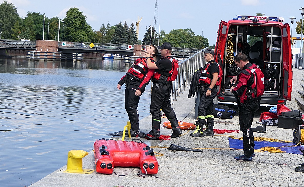 Poniżej zdjęcia z dzisiejszych ćwiczeń strażaków w rzece Elbląg.