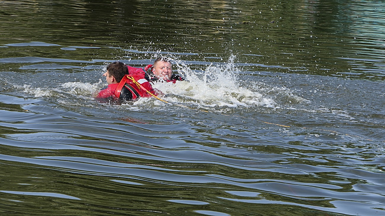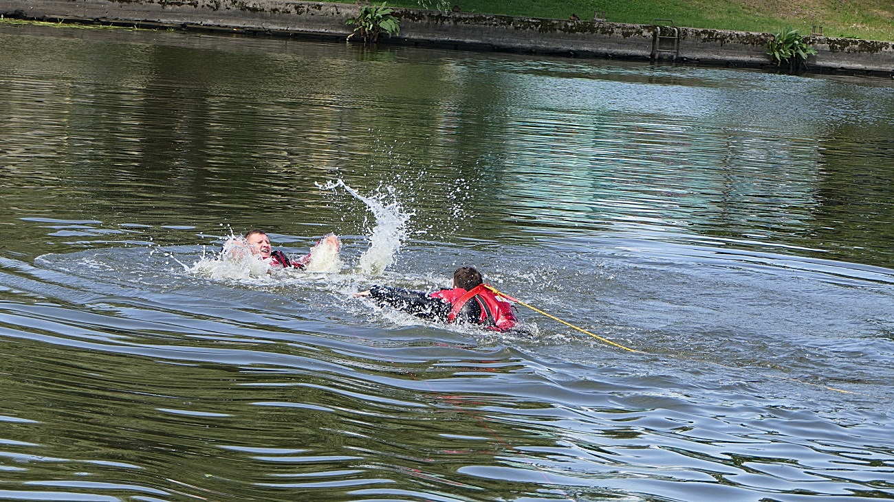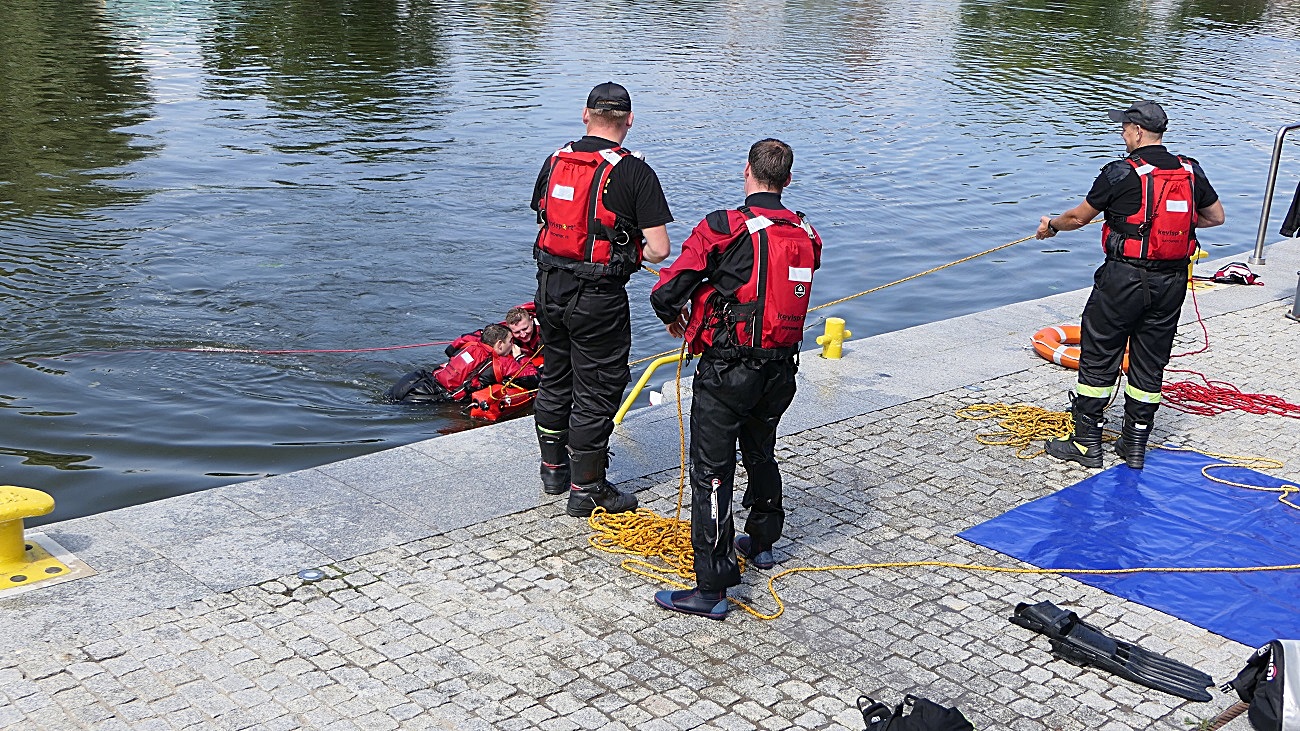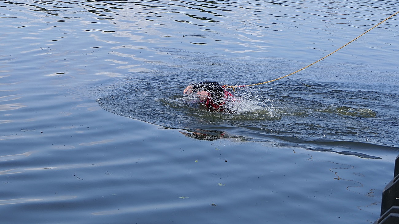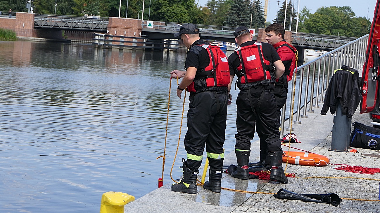 Poniżej zdjęcia z dzisiejszych ćwiczeń strażaków w rzece Elbląg.