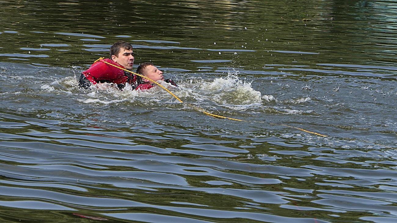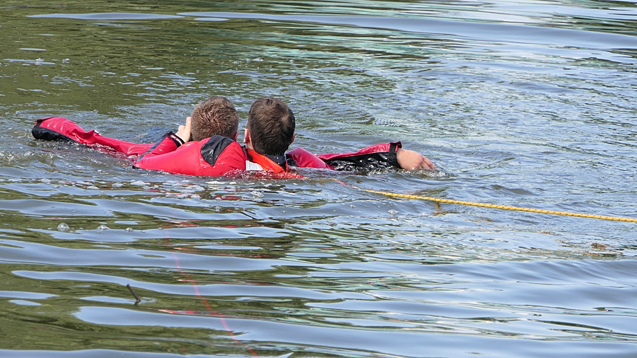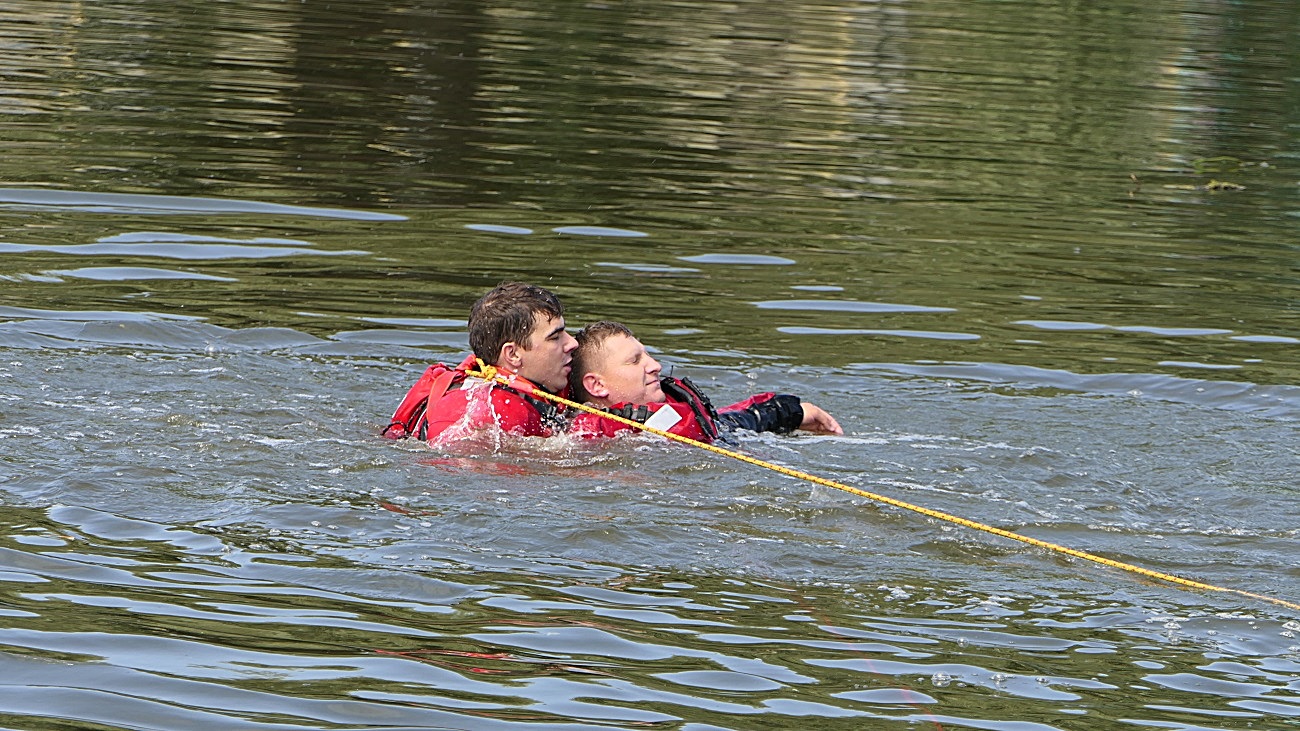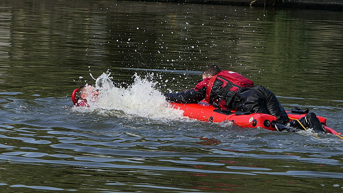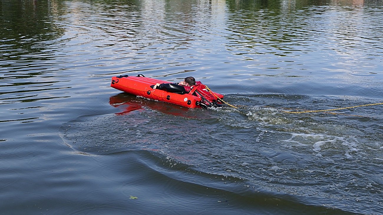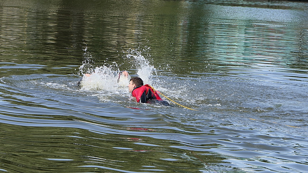 Poniżej zdjęcia z dzisiejszych ćwiczeń strażaków w rzece Elbląg.