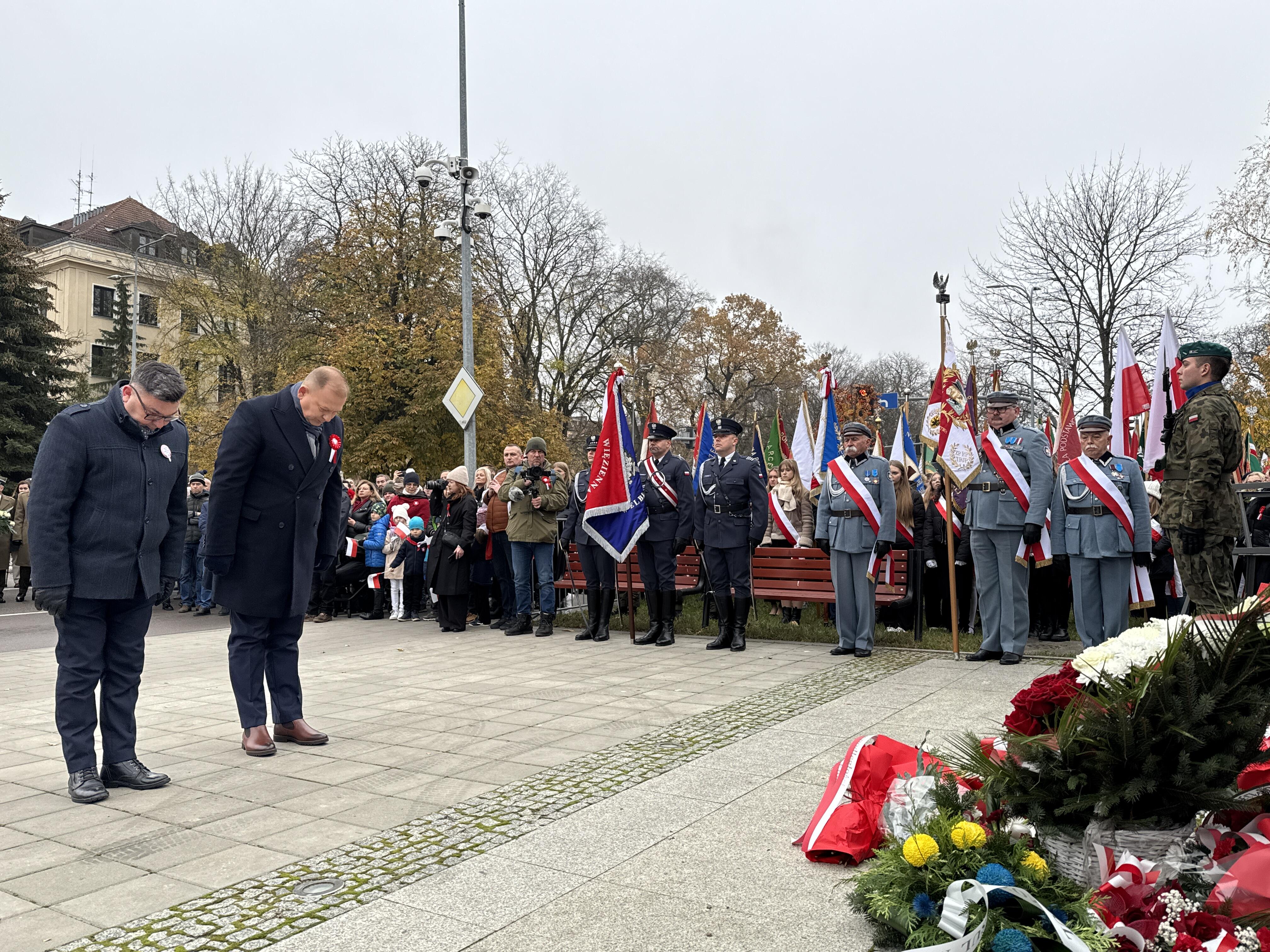 Po mszy, o godzinie 12:00, mieszkańcy udali się na patriotyczne uroczystości przy Pomniku Twórców Niepodległości. Uroczystość zgromadziła przedstawicieli władz miejskich, organizacji kombatanckich, młodzież oraz mieszkańców Elbląga. W trakcie ceremonii odśpiewano hymn narodowy, a następnie złożono wieńce i kwiaty. Przemówienia nawiązywały do walki o wolność i podkreślały wagę niezależności, którą Polska cieszy się od ponad wieku.