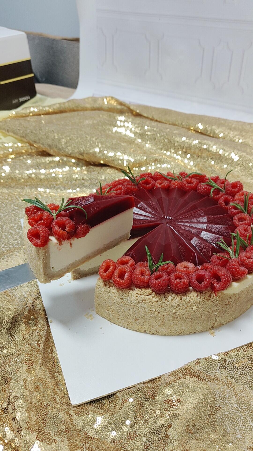 Sernik nowojorski z żelką malinową na maślanym spodzie – kremowy, delikatny sernik z intensywną w smaku żelką malinową, który osadzony jest na kruchym, maślanym spodzie. To idealna propozycja dla miłośników klasyki w nowoczesnym wydaniu.