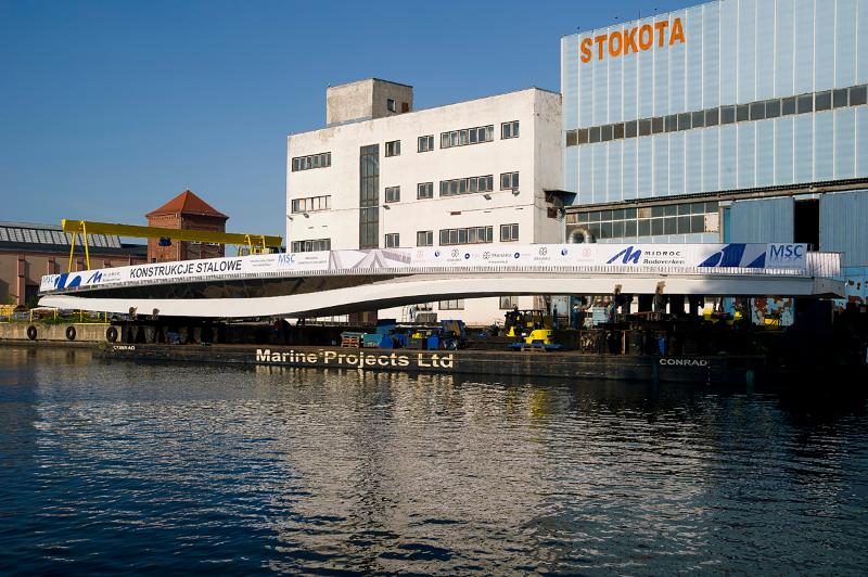kładka zostanie przetransportowana do Gdańska drogą wodną.