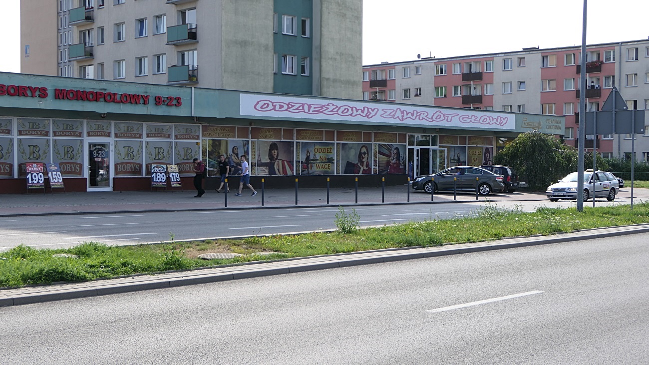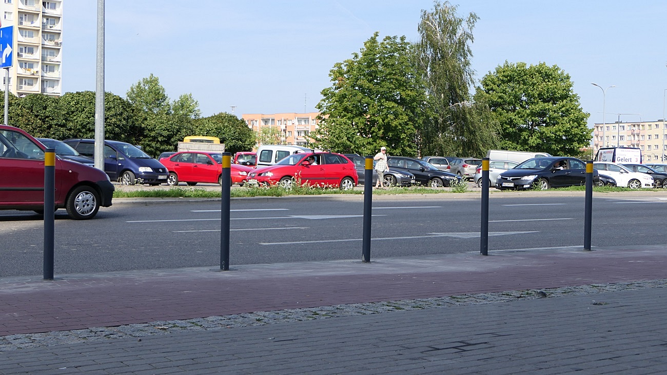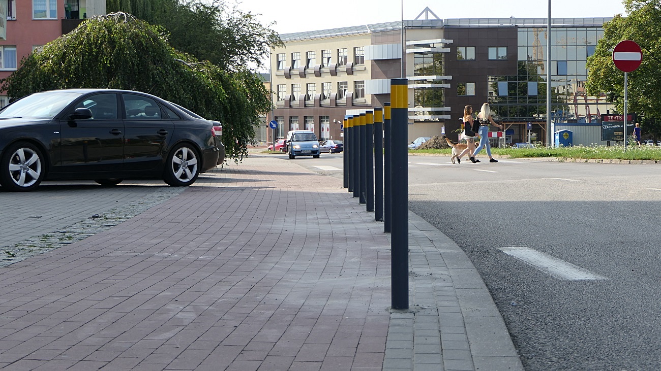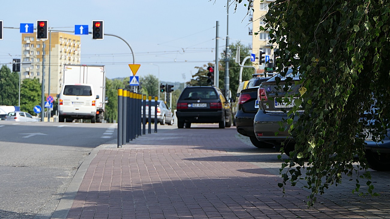 • Zmiana na ul. Teatralnej polegać będzie na likwidacji nieprawidłowego parkowania pojazdów na ścieżce rowerowej / chodniku w obrębie skrzyżowania z ul. Królewiecką i 12 Lutego (wzdłuż pawilonów handlowych).