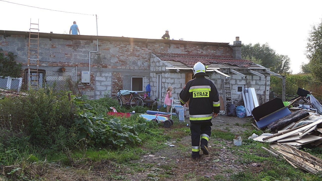 Z pomocą dziś ruszyli strażacy z Ochotniczej Straży Pożarnej w Krzewsku, którzy założyli plandekę na dach, dzięki niej następne ulewne dni i noce będą nieco spokojniejsze.