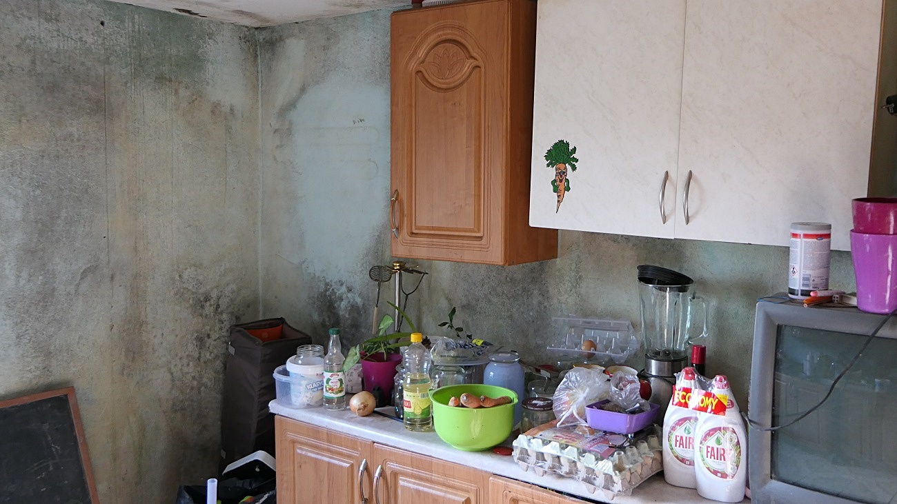 - "Budynek w, którym mieszkamy się rozpada, dach, sufit, wszystko jest oblezione przez grzyba (pleśń). Wszystkie pieniądze jakie mamy na bieżąco lokujemy na naprawy w budynku. Jest bardzo ciężko. Mąż pracuje, ale z jednej pensji nie da rady przeżyć i jeszcze remontować domu, a trzeba bo są maleńkie dzieci w domu. Dzisiejszej nocy w naszym pokoju spadł kawał sufitu... Gdy pada deszcz cały dom stoi w wodzie, nawet po kablach prądowych się leje."